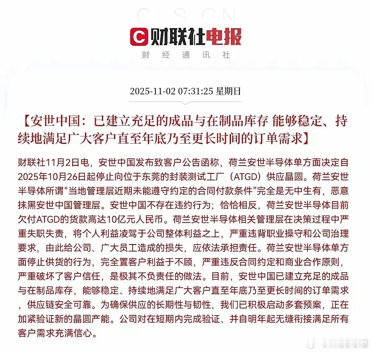 3、安世中国发布消息,即使没有荷兰晶圆,也不影响出货。