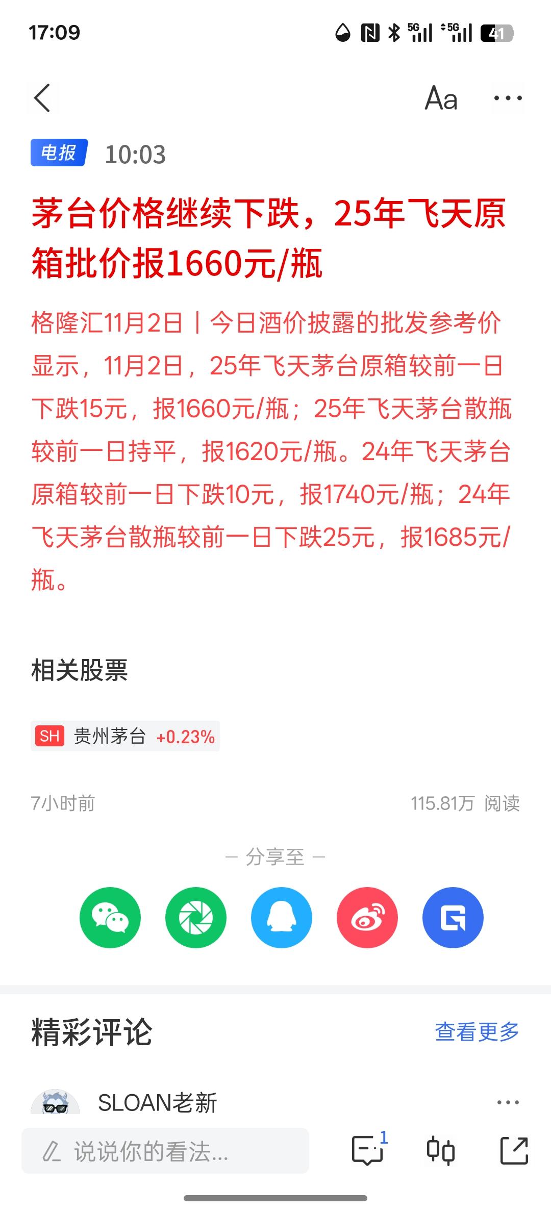 茅台价格继续下跌,25年飞天原箱批价报1660元/瓶,今年白酒的销量不是很好,主要是大家没什么钱消费,所以消费提升不起来,那企业同样产品在市场上也会降价,因为大家消费有限,所以茅台价格下跌也是情理当中! 接下来还会有相关政策支持,提振消费!只有消费市场的需求量旺盛,那企业的盈利空间就会变大