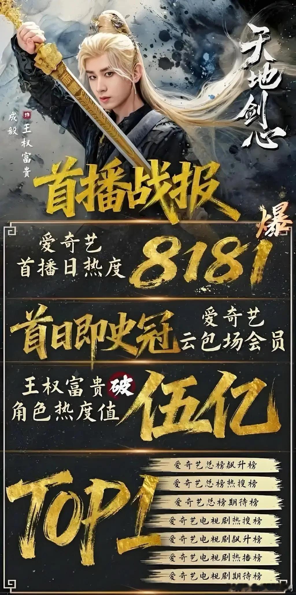 “天地剑心”累计3次登顶有效播放榜,此作品在播出期间表现非常出色,多次在播放数据