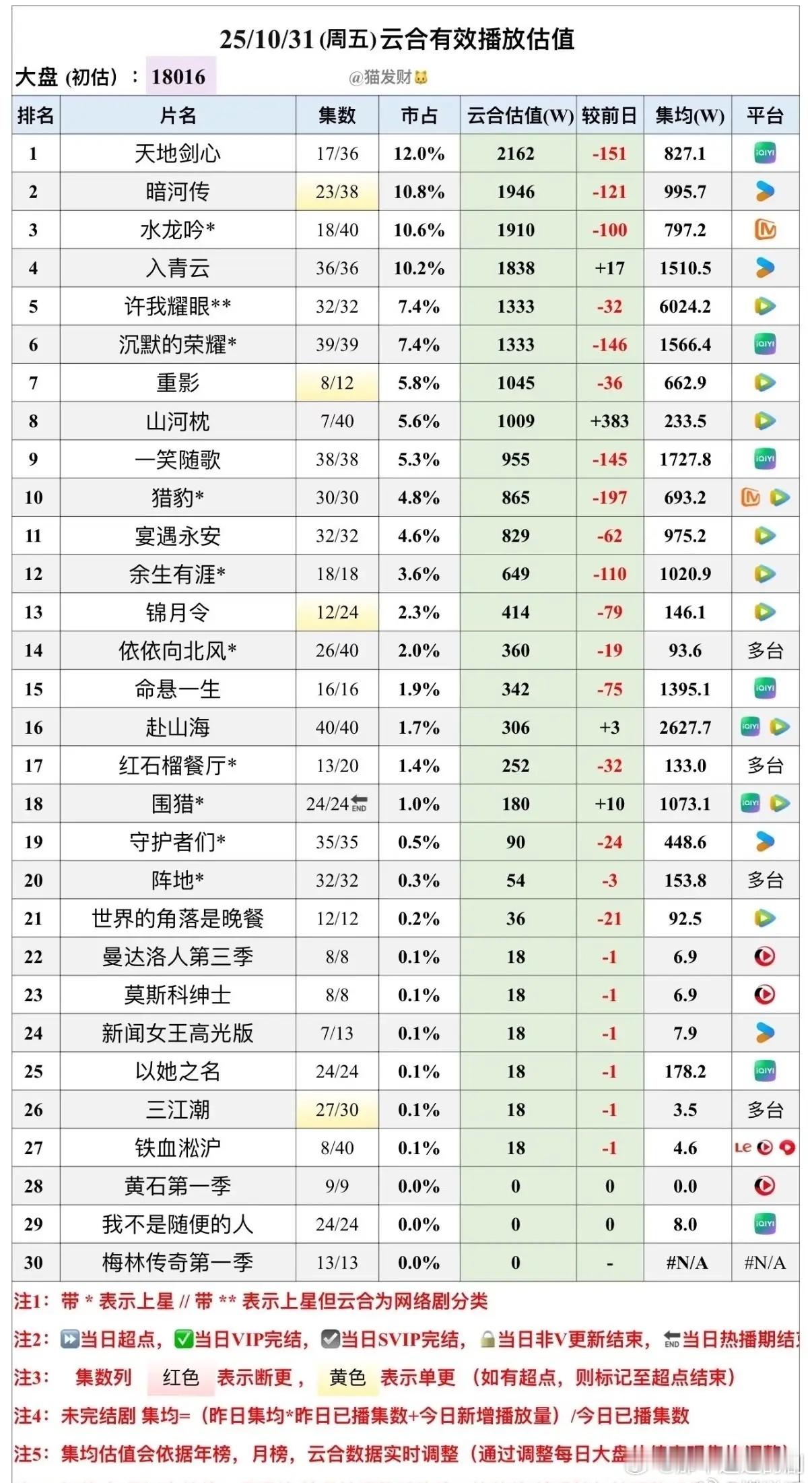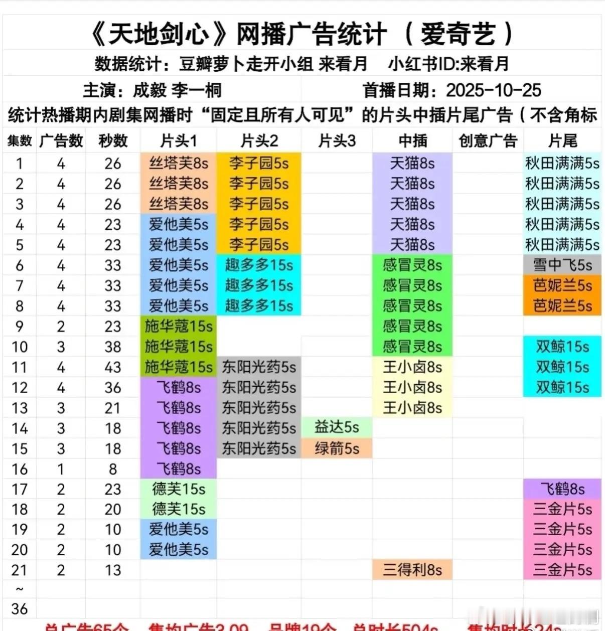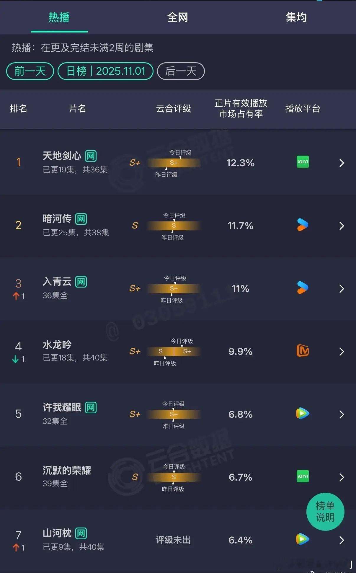 成毅《天地剑心》还剩2广、龚俊《暗河传》还剩1广、丁禹兮《山河枕》还剩1广
