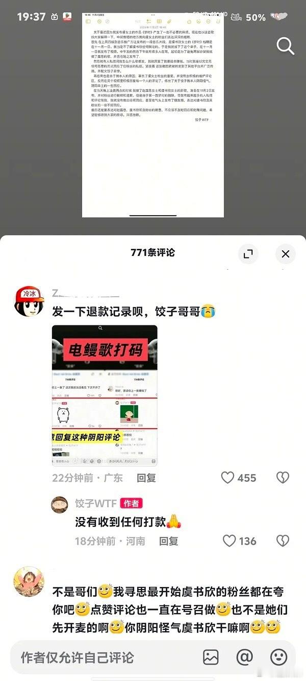 鱼丝非让饺子退钱,但是人家还没收到💰