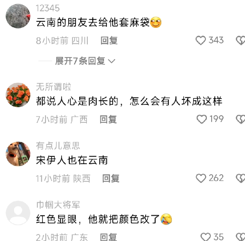 网友评论: 云南的朋友去给他套麻袋[奸笑] 哪个好心人给他弄去缅甸 红色显眼,他就把颜色改了[捂脸] 油~出新皮肤啦