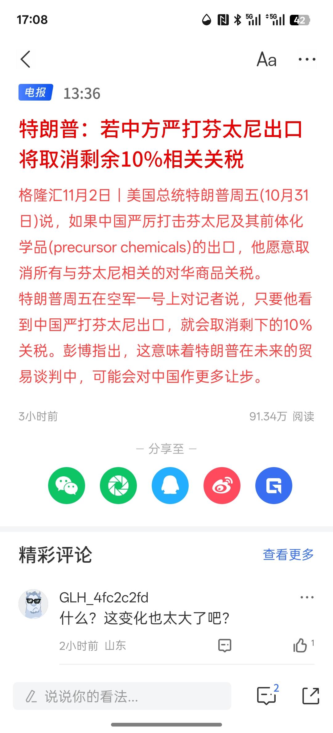 特朗普:若中方严打芬太尼出口 将取消剩余10%相关关税,目前,美国方面还是与中国有着关税贸易的摩擦!双方之间只是延迟了一年!在这中间依然还有很多波折!两国之间的贸易争端不是那么轻易就能解决的! 关于稀土出口限制也只是延迟一年,中国并没有放开!
