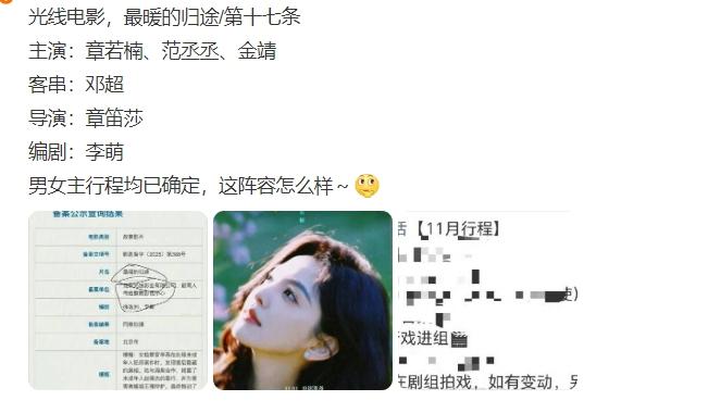 网传赵丽颖将出演电影《最暖的归途》! 这部电影一开始就传过她,光线的项目,搭档是邓超和范丞丞,继电影《第二十条》之后,出演《第十七条》,也有消息说赵丽颖只是客串,女主由光线一姐章若楠出演,邓超可是客串。