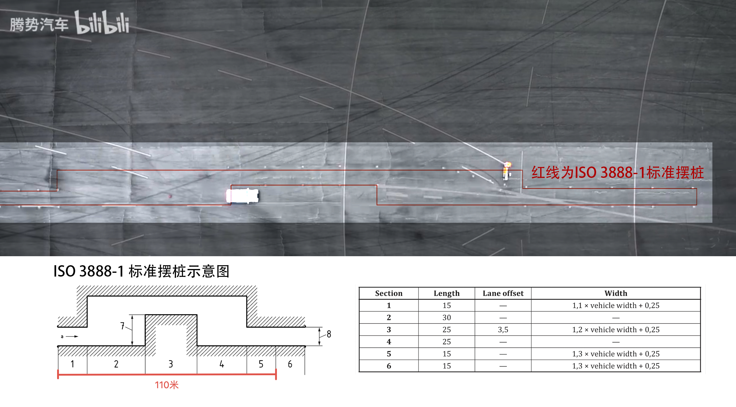 其实这次测试最大的进步,就是它不是一个非标测试。虽然腾势自己没有提及测试标准,但把ISO标准的桩桶布置,叠加在腾势官方宣传片的航拍俯视镜头上,就可以确认,这次测试就是按照ISO 3888-1标准摆放的桩桶[不愧是你]