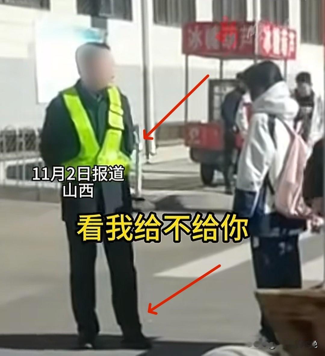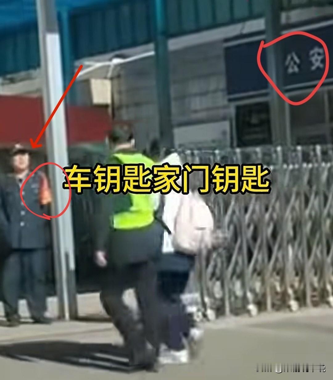 抢夺女生钥匙的男子怎么看都不像是个保安,注意看他的站姿,真是太有门道了,背着双手迈着腿,既没有戴配发的帽子,也没戴红色的袖标,仅仅穿了一件崭新的绿色马甲,趾高气昂的样子显得官威十足,这样的“保安”还真是头一回见!