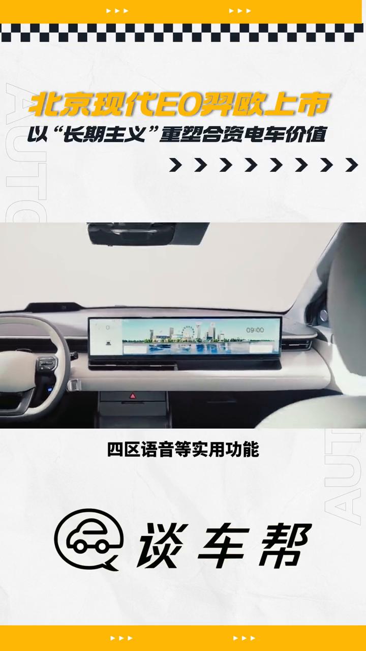 北京现代EO羿欧上市,以"长期主义"重塑合资电车价值。 谈车帮。 在新能源竞争白热化的今天,北京现代以一场战略发布与一款新车上市宣告了合资品牌的强势回归。2025年10月29日,"智启2030计划"正式启动,从产品研发合作到出口与服务勾勒出清晰的新能源转型路径。与此同时,首款新质力纯电SUVEO羿欧同步登场,以11.98万元起的价格承载30万级的品质积淀。 EO羿欧不仅是战略落地的首款产品,更是北京现代迈向智电时代的关键一步。历时7年研发,历经120万公里严苛测试,它以"安全为基可靠为本"重新定义合资价值。720°铠甲车身、9气囊全域防护、E-GMP纯电平台、弗迪刀片电池,每一项配置都在诠释何为"长期主义的品质坚守"。 在智能化层面,EO羿欧搭载高通8295芯片、27英寸超薄宽幕屏,并配备健康检测、四区语音等实用功能,拒绝华而不实,专注有温度的科技体验。从家庭制动模式到雪地驾驶辅助,从灵活大空间到V2L对外放电,它真正融入用户多元生活场景,成为可靠的出行伙伴。 北京现代正以"战略+产品"的双轮驱动打破市场对合资转型的疑虑。EO羿欧的上市不仅是一次产品突破,更是合资品牌在新能源时代价值回归的强烈信号。