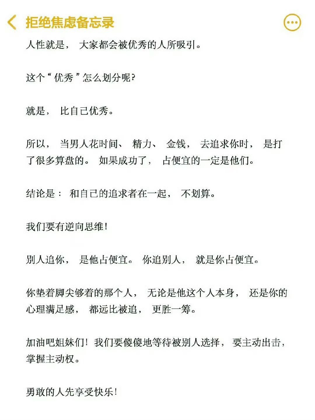 当你把向外追逐的目光收回,开始专注打磨自己、精进成长,就会发现:整个人会变得越来