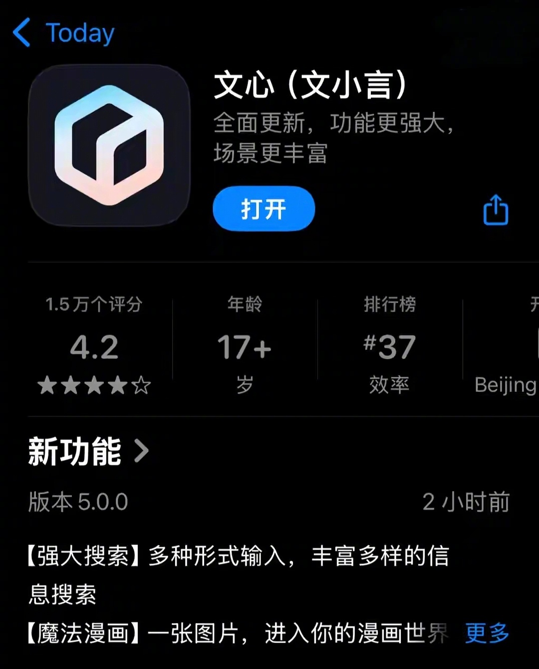 百度“文心一言”app 于 2023 年 7 月 4 日上架 ,2024 年 9 月 4 日发布 4.0.0 版本并改为“文小言”。2025年11月1日,最新的 5.0.0 版本,其名称再次改为 —— “文心”。