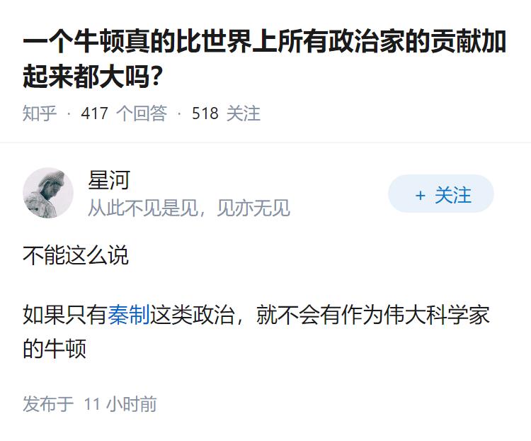 一个牛顿真的比世界上所有政治家的贡献加起来都大吗?