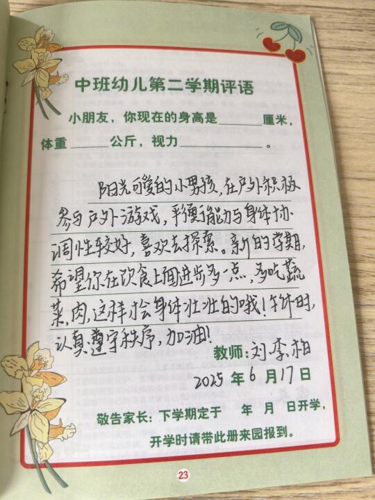 幼师快放假了,期末评语都写完了吗?
