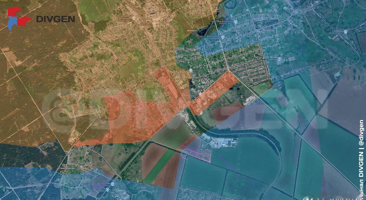 Divgen更新沃尔昌斯克前线局势: 俄军在市区西部发起新一轮攻势,成功切断了乌克兰守军三条公路运输线中的两条并迂回到市中心的后方。