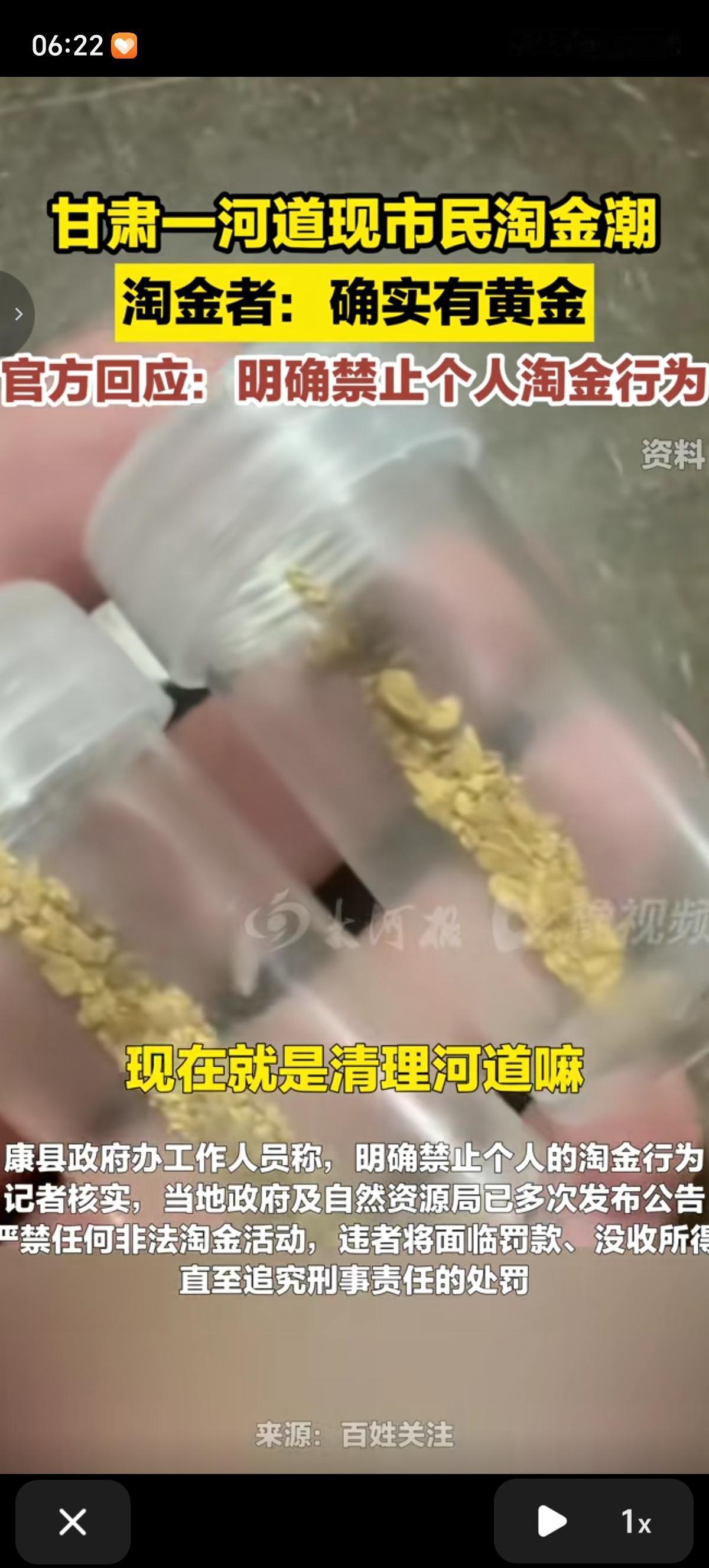 羡慕甘肃人,尤其是陇南康县燕子河附近的人,居然有一夜暴富得机会,可以淘到黄金,周边商户反映该现象年初就已出现,虽被官方叫停,但随着近期河道清理、河床开挖,淘金行为再次回潮 。 都淘了好几个月了,也该够本了,不让淘就别淘了吧,河道挺危险的。
