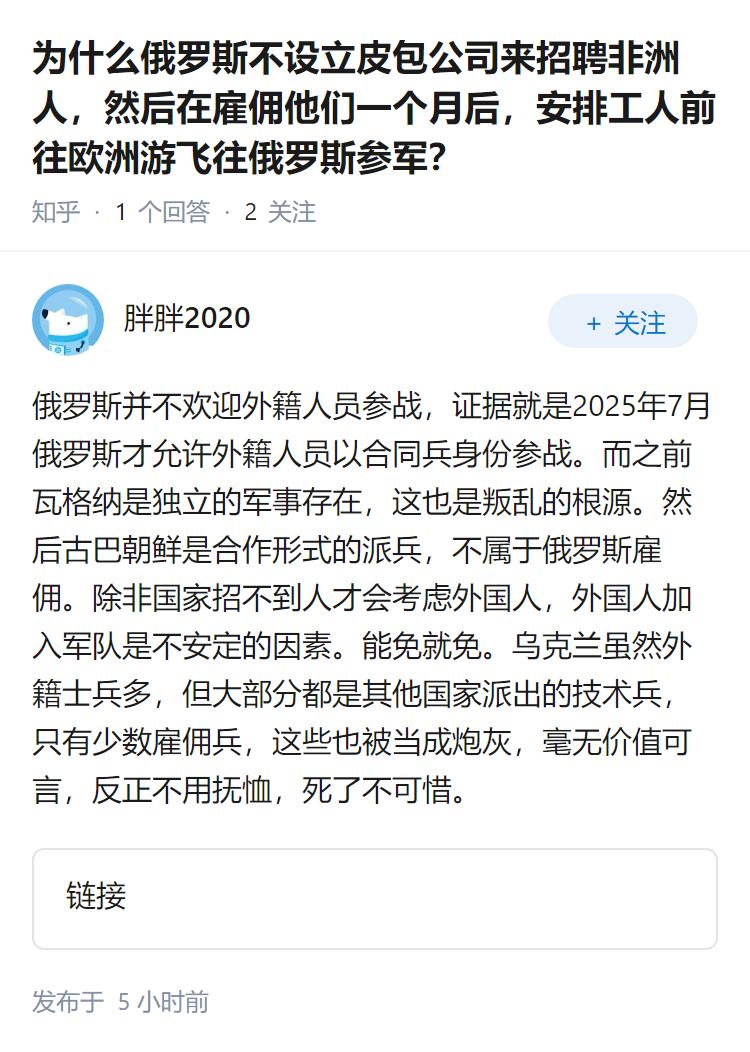 为什么俄罗斯不设立皮包公司来招聘非洲人,然后在雇佣他们一个月后,安排工人前往欧洲游飞往俄罗斯参军?