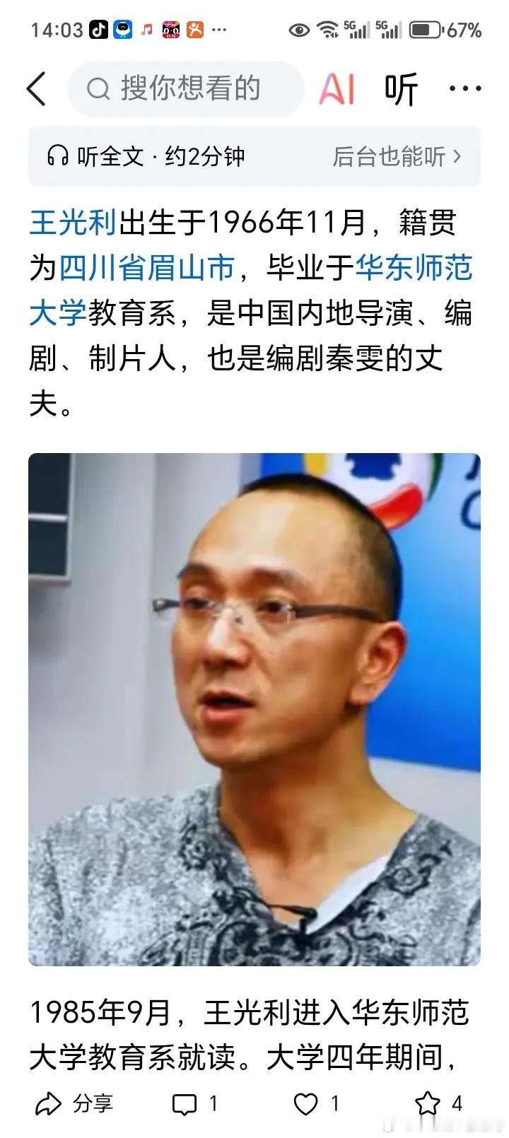 人品真是一言难尽!估计秦雯老公王光利怎么也没有想到,自己火了不是因为导演的作品