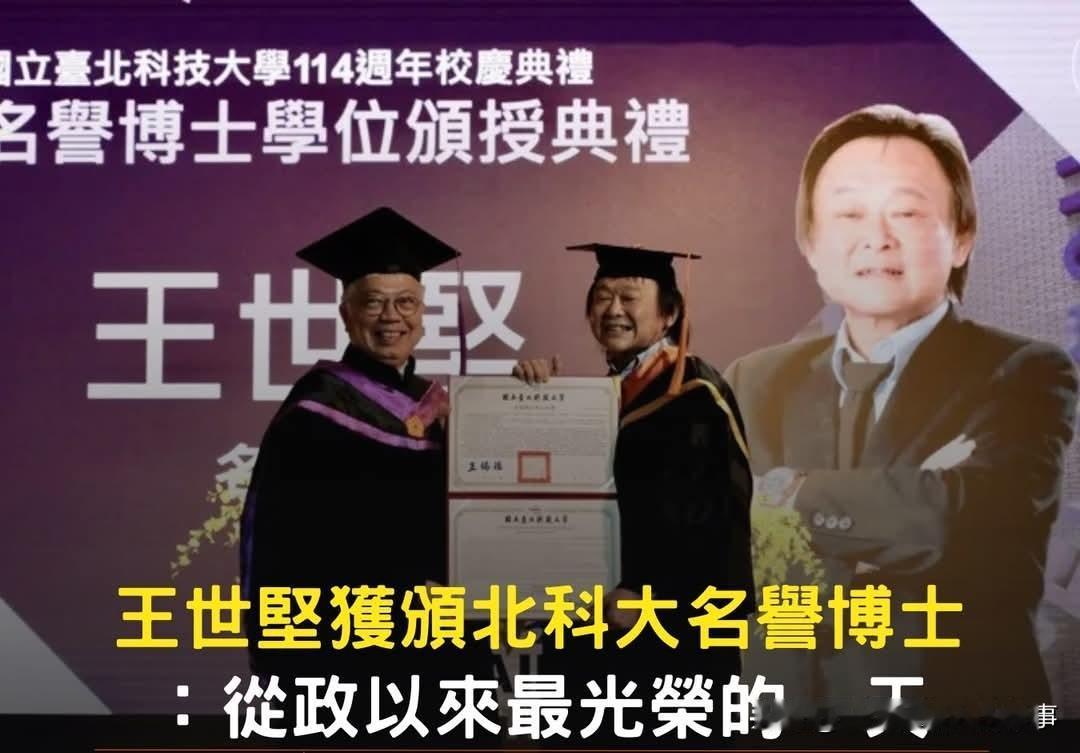 台湾网红王世坚获得荣誉博士头衔!嗨喊:从政以来最光荣的一天! 如果说最近两岸之间的顶流人物毫无疑问非民进党的王世坚莫属!谁曾想因为大陆抖音网红改编他质询金句创作的一首《没出息》让他火遍了两岸,成为众人热门模仿对象,成为顶流。 王世坚最近运气挺好的,除了因为《没出息》爆红,王世坚这两天还被台北科技大学授予荣誉博士头衔,让王世坚激动说道:这是他从政20多年来最光荣的一天。王世坚在岛内网上还因反废死被民众追捧为民进党唯一的良心,笑死了。