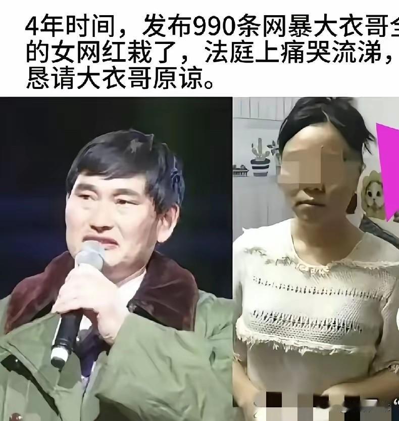 网络诽谤落幕,网红获刑,正义或许会迟到,但不会缺席 大衣哥被诽谤的事终于结束了,网红被判刑了,十个月,六个月加四个月,她一直诽谤大衣哥,还有他的家人,这下好了,进去了,她在法庭上哭,求饶,大家都看到了,可是没用,大衣哥没原谅她。 四年时间,发了990条诽谤信息,为了啥呢,为了火,就是想蹭大衣哥的热度,大衣哥多出名啊,她跟他又不认识,也没啥过节,就是想红,真不知道咋想的,大衣哥和家人真倒霉。 有些人就是仇富,觉得大衣哥是农民,不该这么火,不该有这么多钱,还有人觉得网上随便说,没事,反正谁也不知道是谁说的,法律意识太差了,现在的人,为了流量,啥都敢干。 网络不是随便说话的地方,诽谤要负责任的,大衣哥告她是对的,就该这样,不能让这些人乱来,大衣哥维权是好事,给其他人也提个醒。 大家上网说话可得注意,别乱说,得尊重别人,别到时候后悔,网络也要好好管管,打击网络暴力,得让网络环境好起来,大家说是不是,这样才好。