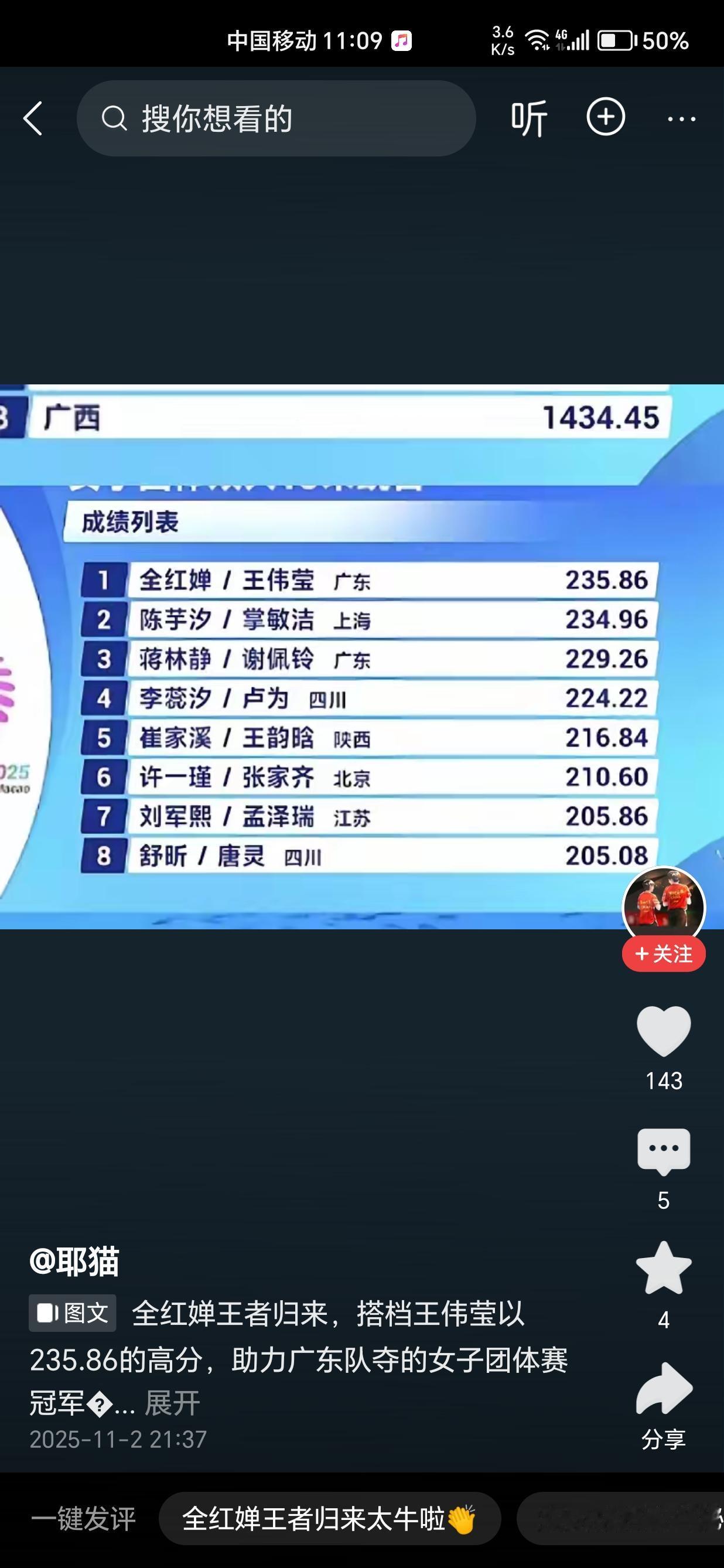 时隔六个月复出,拿下金牌后,反复抚摸,久久不能释怀。 近日,奥运冠军全红婵出战第十八届全运会,这次参加比赛,是她时隔六个月首次出战大型比赛,拿住奖牌的时候,她反复抚摸,我们可以看出她内心是多么的欣慰, 这几个月她付出的辛苦非我们常人所能及的,再看看陈芋汐她们的分数稍微落后,从中我们可以看出跳水健儿们时时刻刻都在努力。 人家冠军都这样努力,我们普通人有什么理由不努力呢,人生可能就是这样,只要你在奋斗的路上,不管你在哪个位置,总有人在默默的追赶你,当然你也是那个正在奋斗的人。