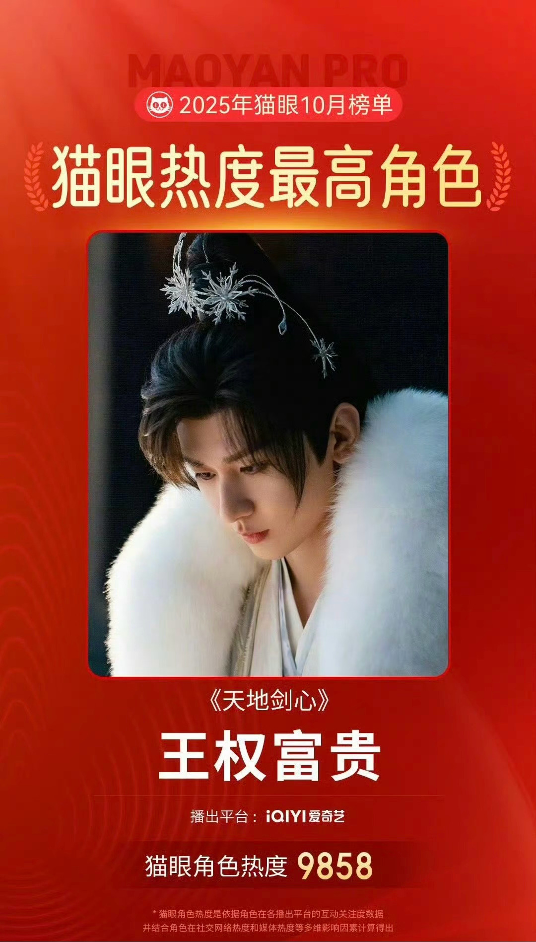 10月份热度最高角色,是成毅在《天地剑心》中饰演的“王权富贵”,你们看了这部剧吗?[柯基][柯基][柯基]