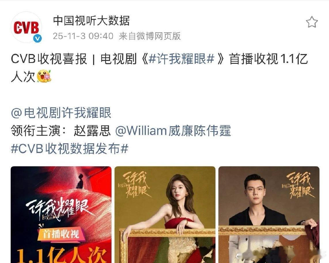 Cvb发了赵露思许我耀眼首播收视1.1亿人次喜报,爆剧是这样的👍
