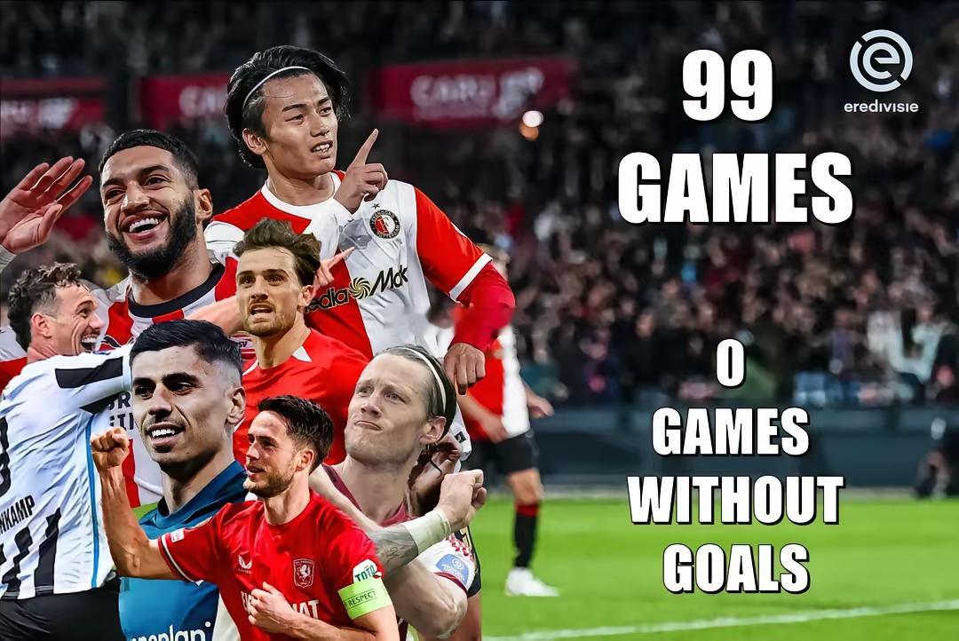 荷甲一共18支球队,第11轮比赛过后一共踢了99场比赛,没有任何一场比赛出现0-0的比分。换句话说,荷甲联赛每场比赛都能取得进球。
