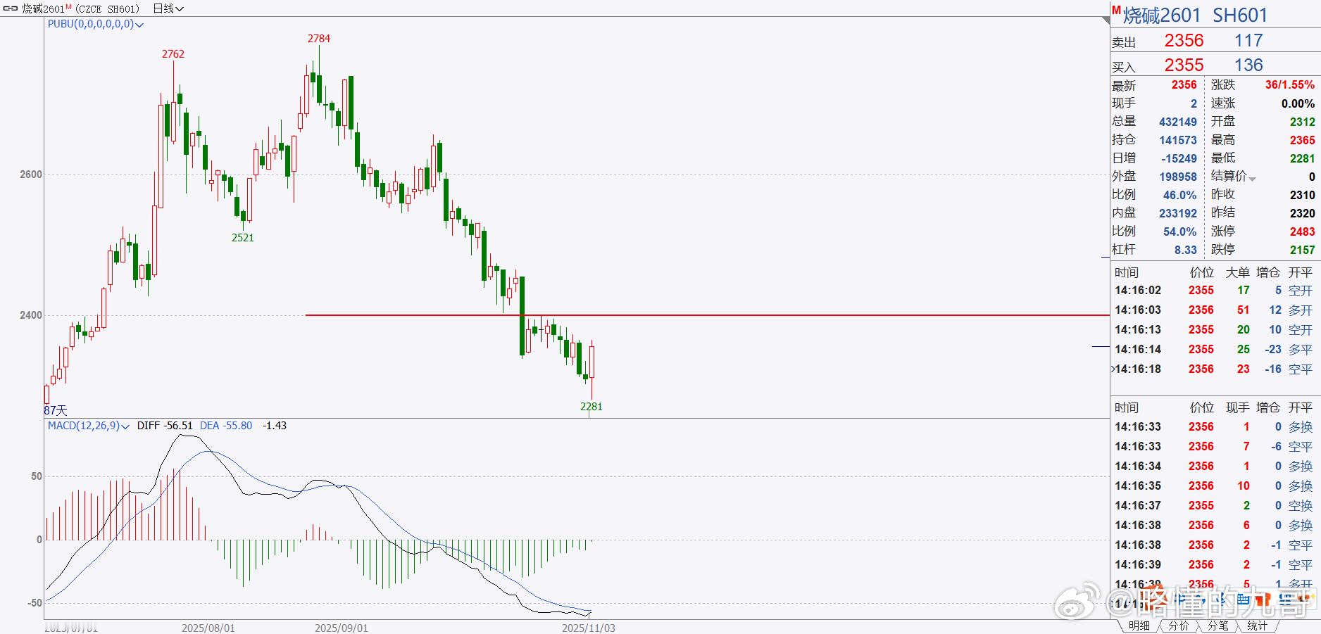 期货 烧碱这根大阳线出来,后面的线也顺利上破了,有概率走出一波反弹!