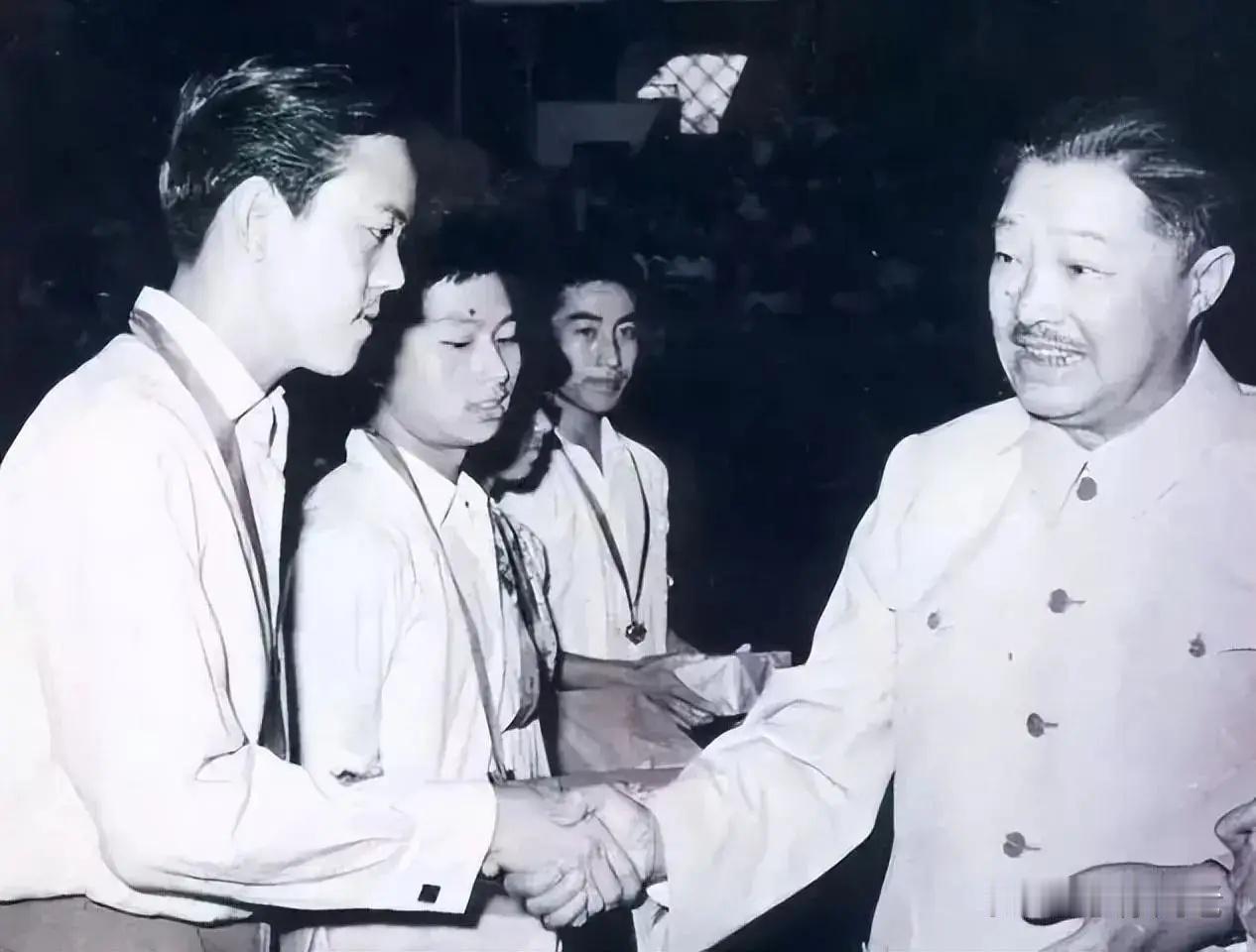 1957年, 与贺龙握手的年轻人, 才20岁。 1965年,他率队获得了第28届世乒赛女子双打和混合双打冠军,并首夺女团冠军。 1968年,他选择以生命为代价,换取个人尊严… 他母亲因劳累过度、营养不良导致身体虚弱,1966年肺结核去世了,当初把她留在香港,还能活久一点。 没准,还能活过他。
