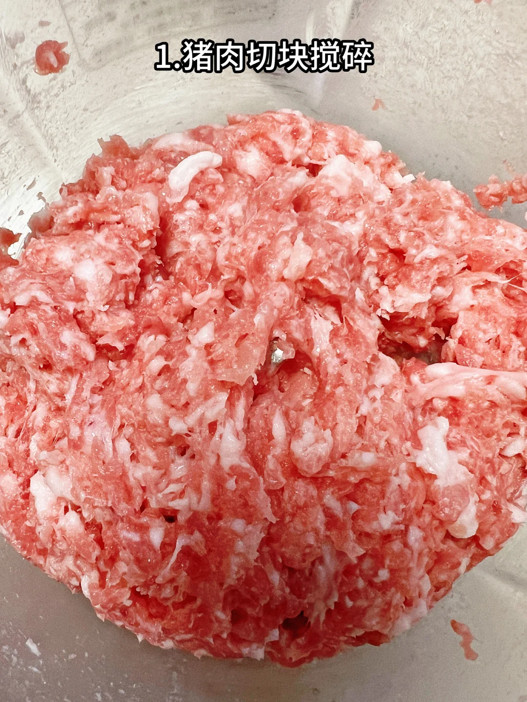 1、猪肉切块搅碎