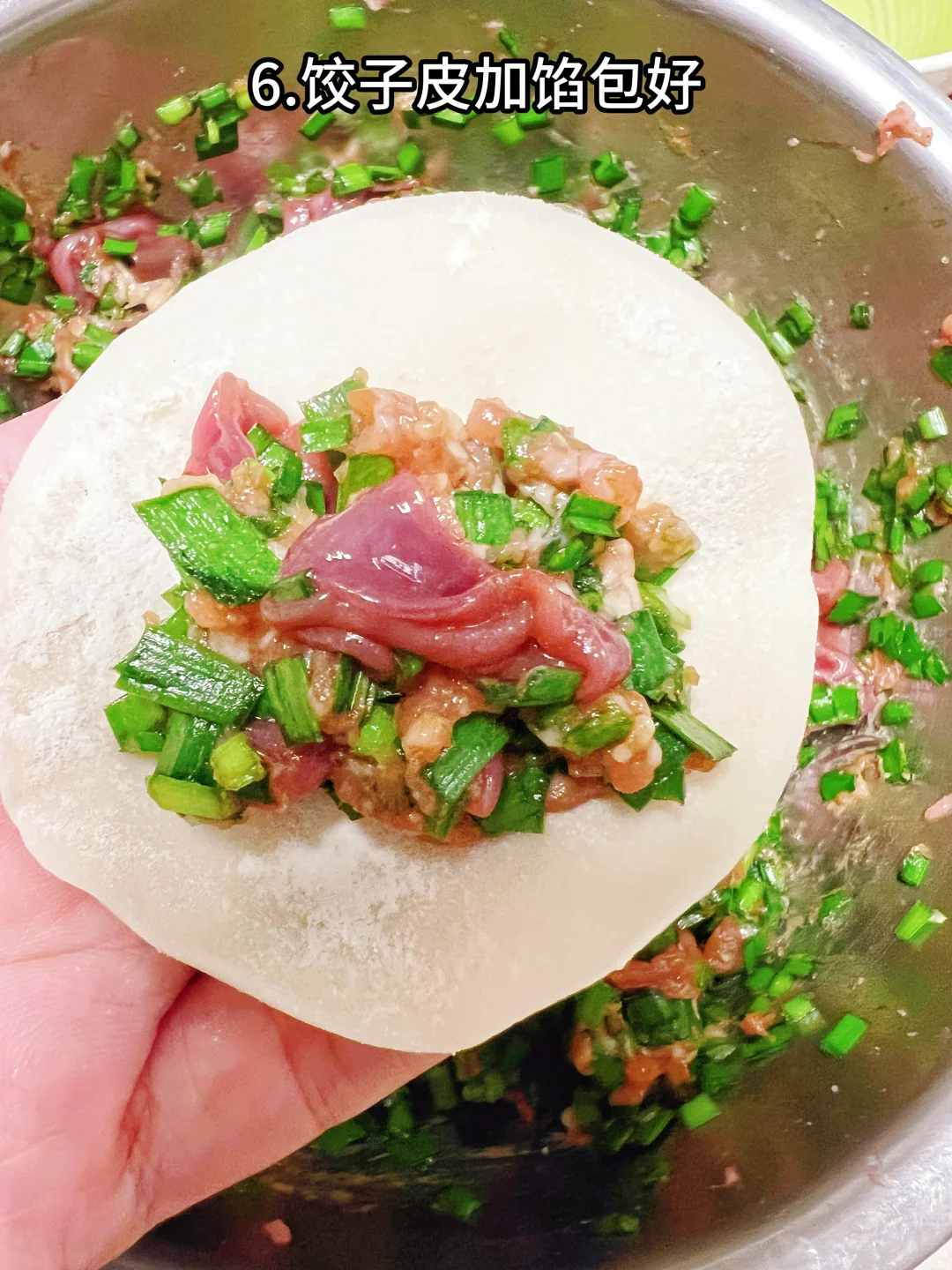 6、饺子皮加馅包好