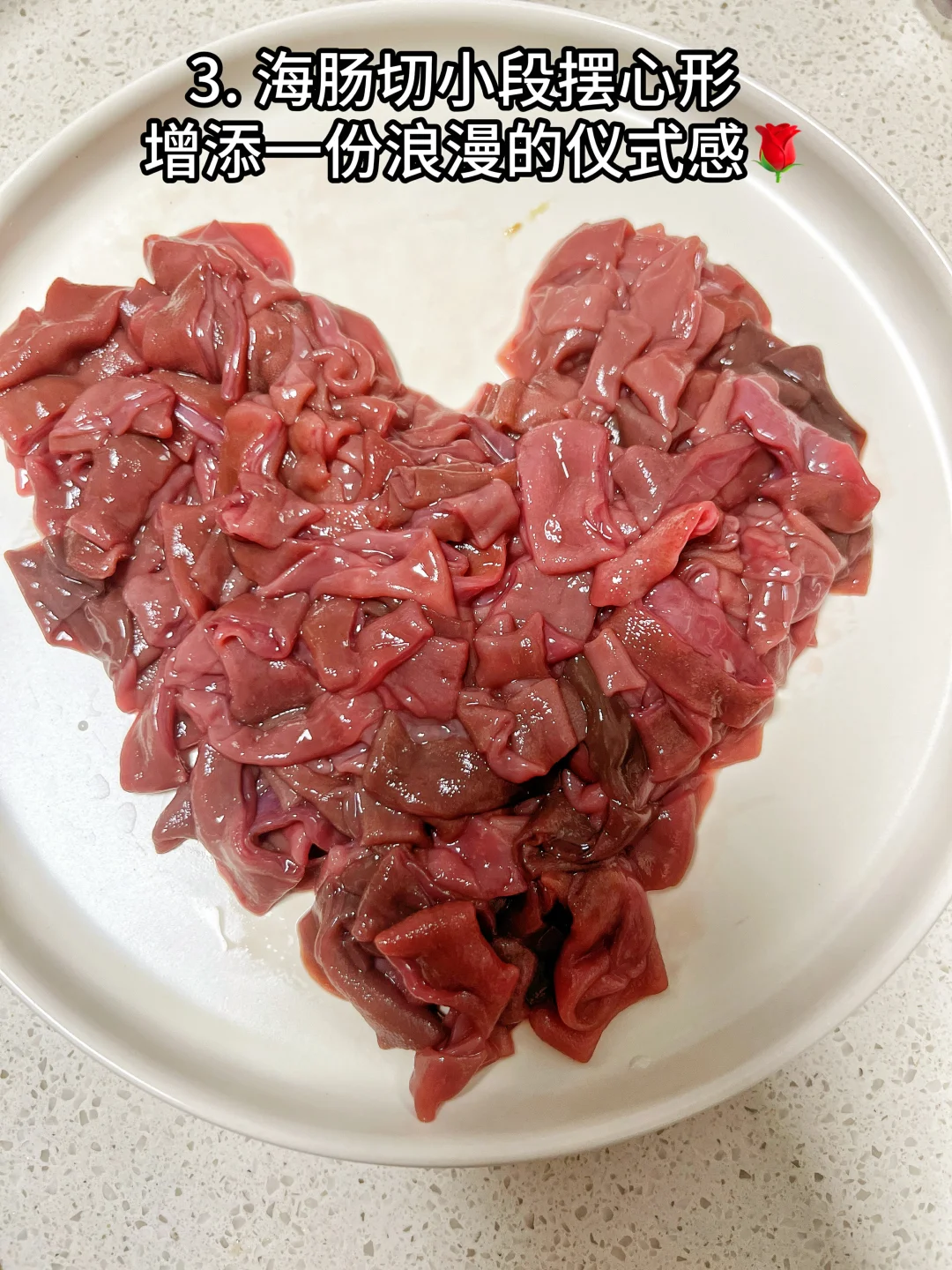 3、海肠切小段摆心形,增添一份浪漫的仪式感🌹