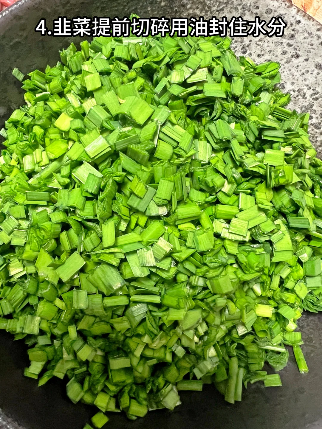 4、韭菜提前切碎用油封住水分