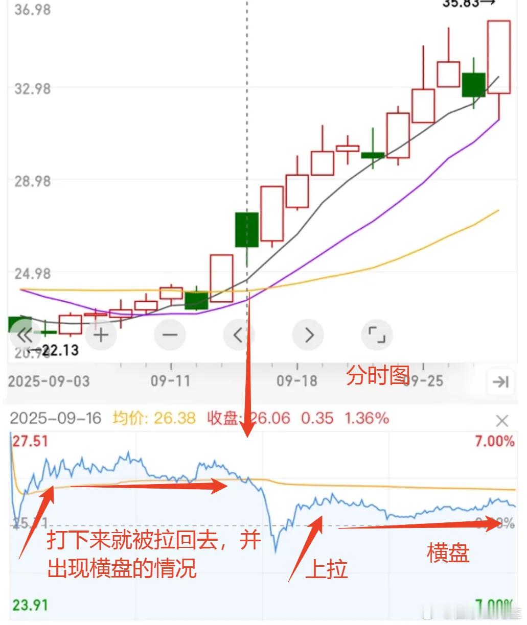 第一:从技术形态上看,如图一所示。这个阴线的收盘价是高于昨天的收盘价的。这点很重要,如果收盘价远远低于昨天的收盘价的话,会引起恐慌,导致多数资金崩溃,那么主力如果想再往上拉,将会很费力。