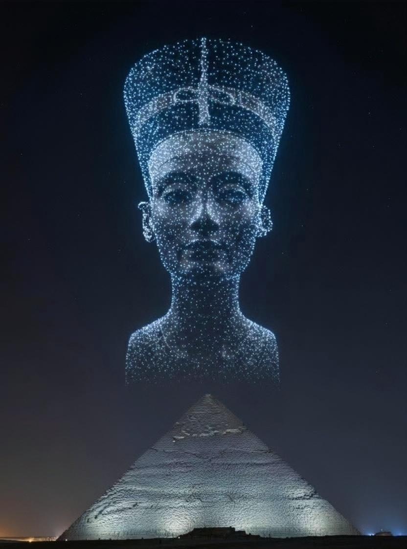 大埃及博物馆(Grand Egyptian Museum)开幕仪式的无人机秀:“埃及给世界的礼物”"هدية مصر للعالم" 这张很有神迹感......