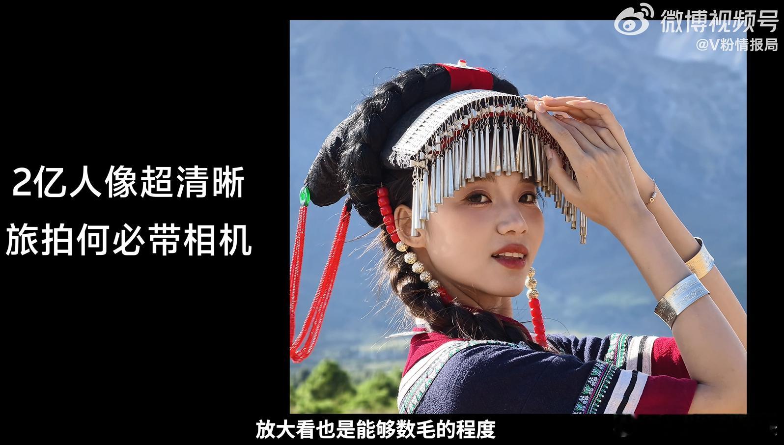 特别是人像方面,在拍摄一些民族服饰或有非遗元素的照片时,轻松出片。X300 Pro支持蔡司2亿APO超级长焦抓拍,2亿像素下,银饰的雕花、刺绣的针脚清晰都很清晰,发丝在风中扬起的弧度都能表现出来。50mm经典黄金人像焦段,肤色还原自然,既非网红脸的苍白,也非过度磨皮的“塑料感”,能很好的保留少数民族肌肤纹理和真实质感,就是那种“零添加的”让人一眼心动的感觉。