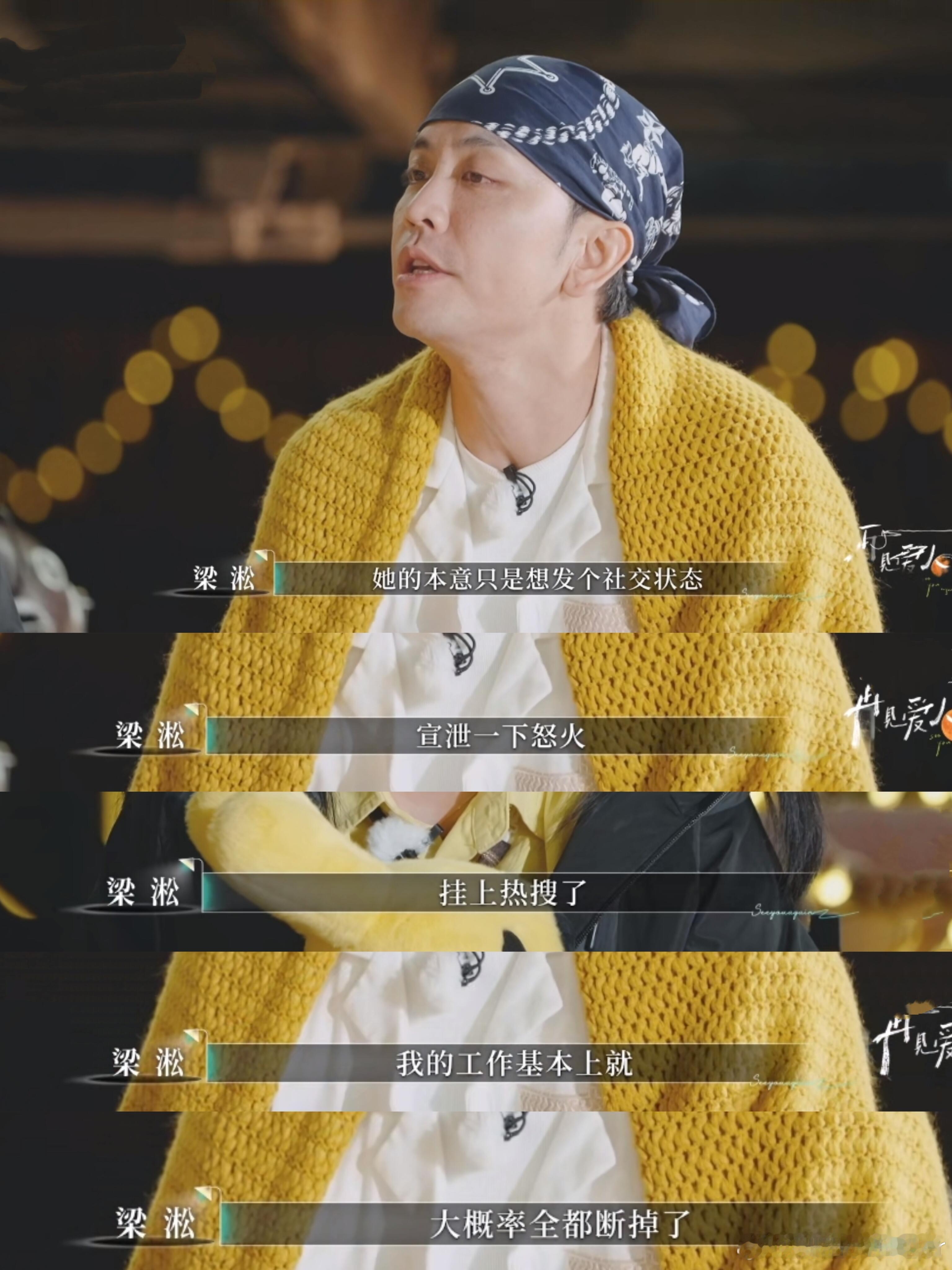 梁淞说起自己的委屈,是因为吵架那次,为了发泄,何美延发的社交状态,导致自己的工作基本上都没有了,也就是家里的收入来源都没了…