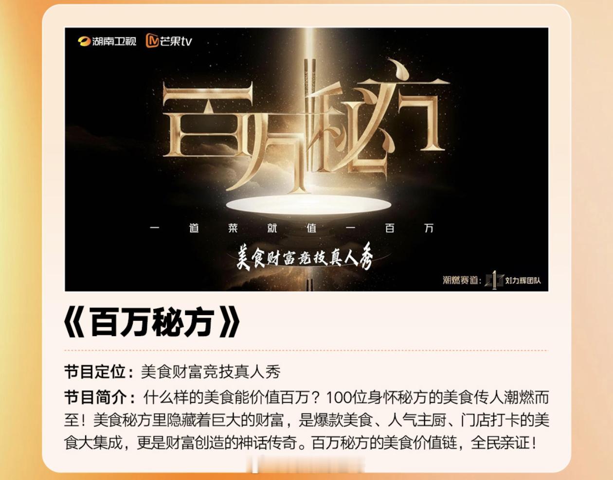 🥭新综艺《百万秘方》