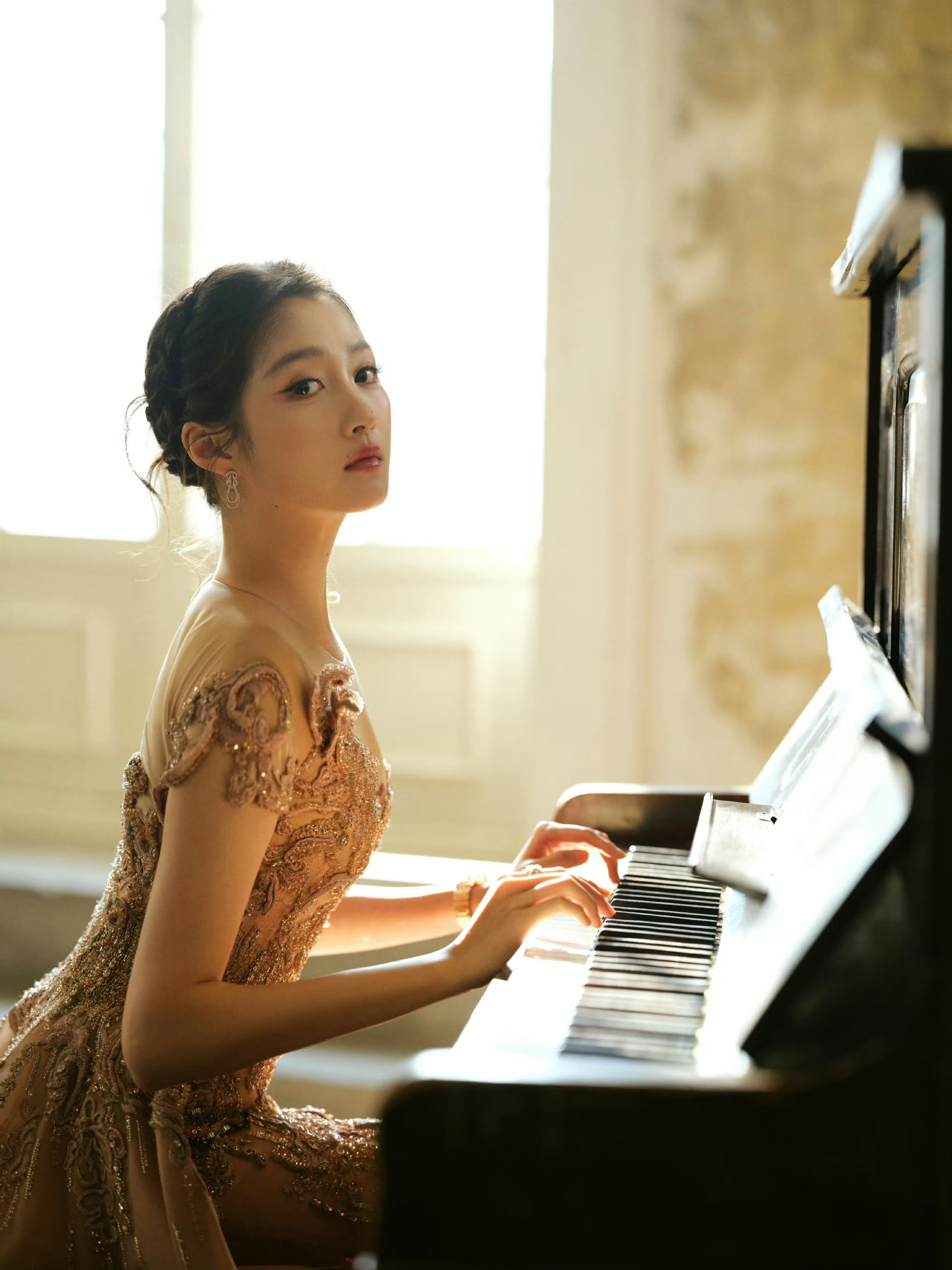 关晓彤香槟粉鎏金纱裙关晓彤像一幅油画关晓彤香槟粉鎏金纱裙,像一幅油画🖼️