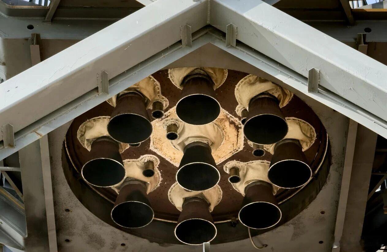 11月1日,深蓝航天“星云一号”火箭一级动力系统九机并联试车在济南马山试车基地圆