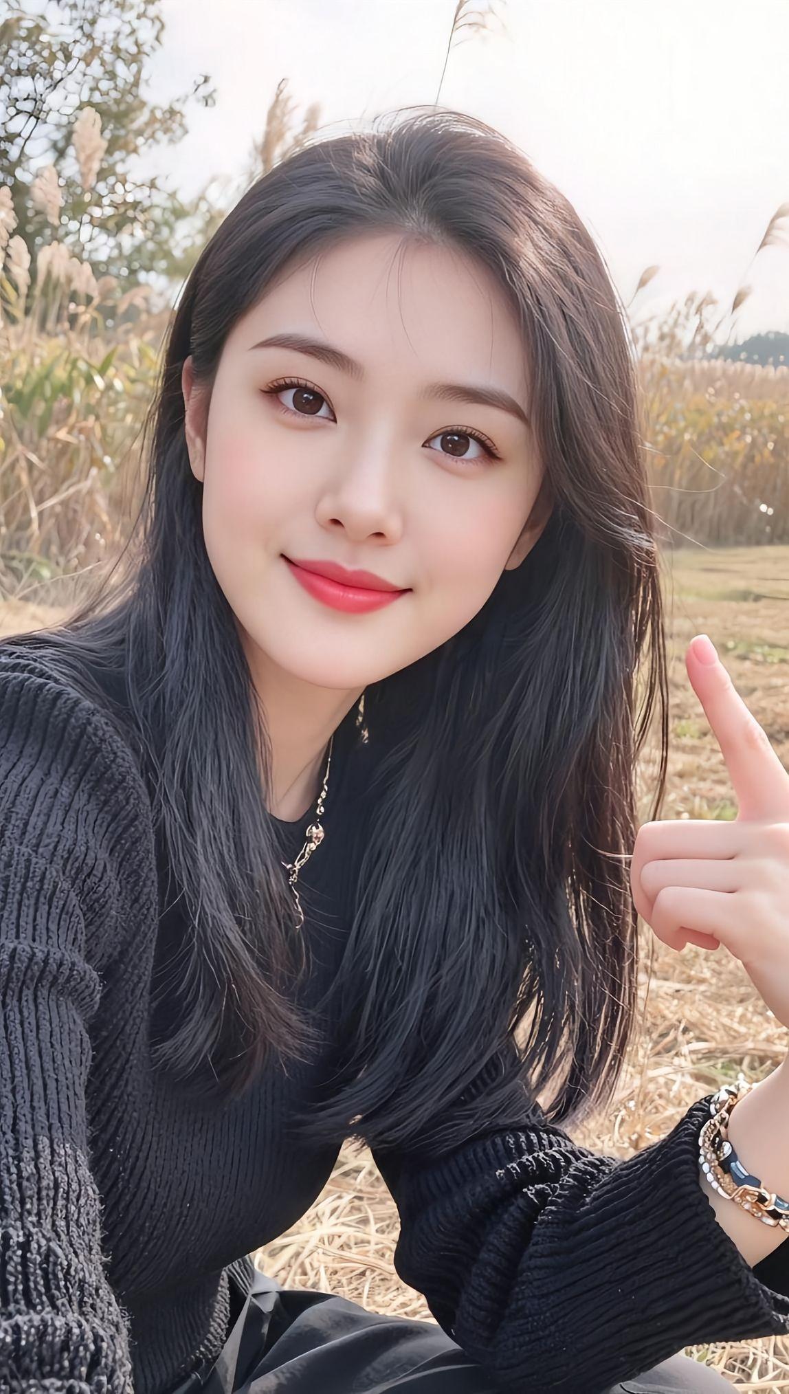 阳光下的甜美笑容,黑发飘飘,元气满满的一天!🌞😊