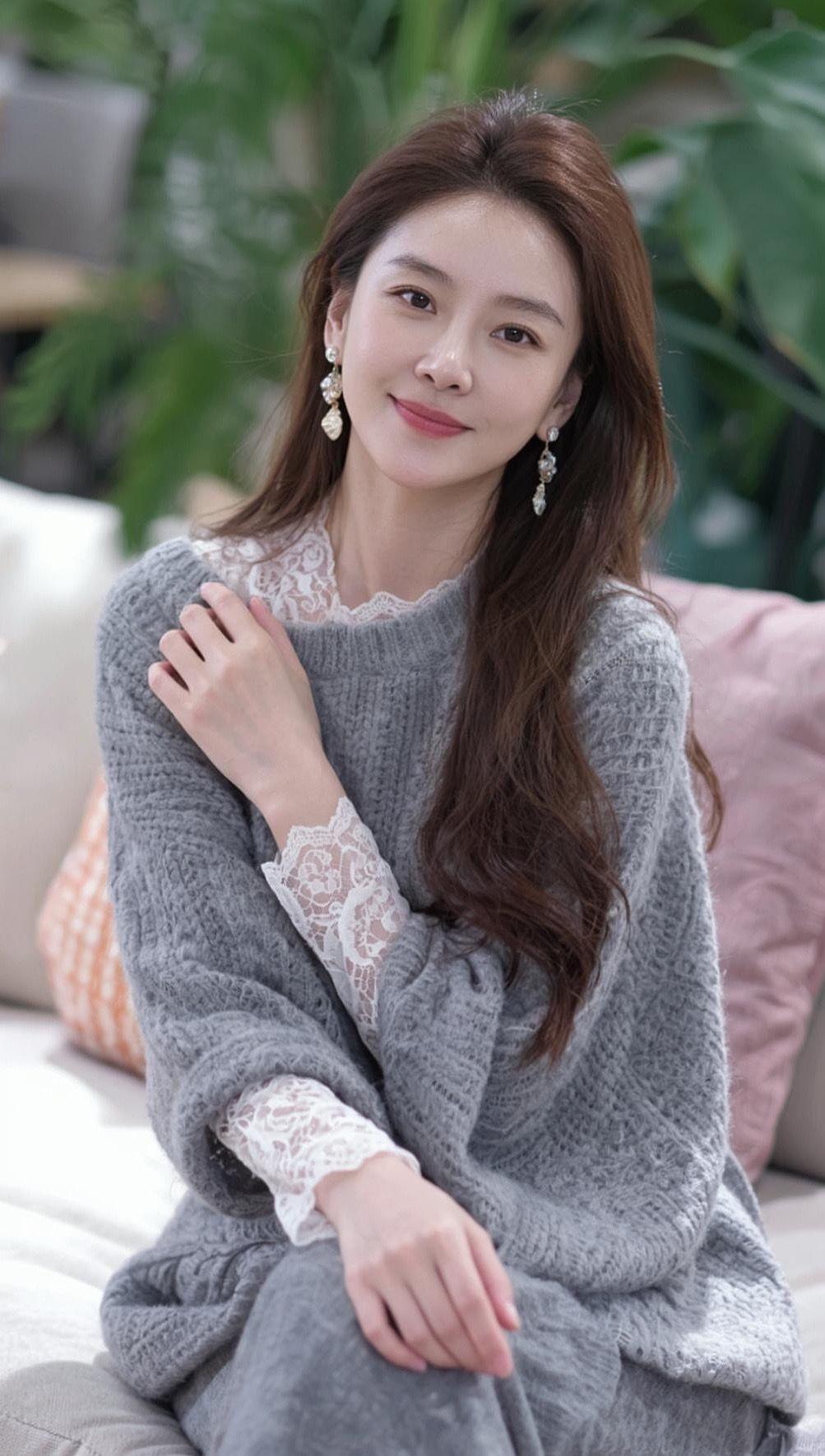 温柔甜美的少女,穿着花色毛衣,散发着温暖气息。
