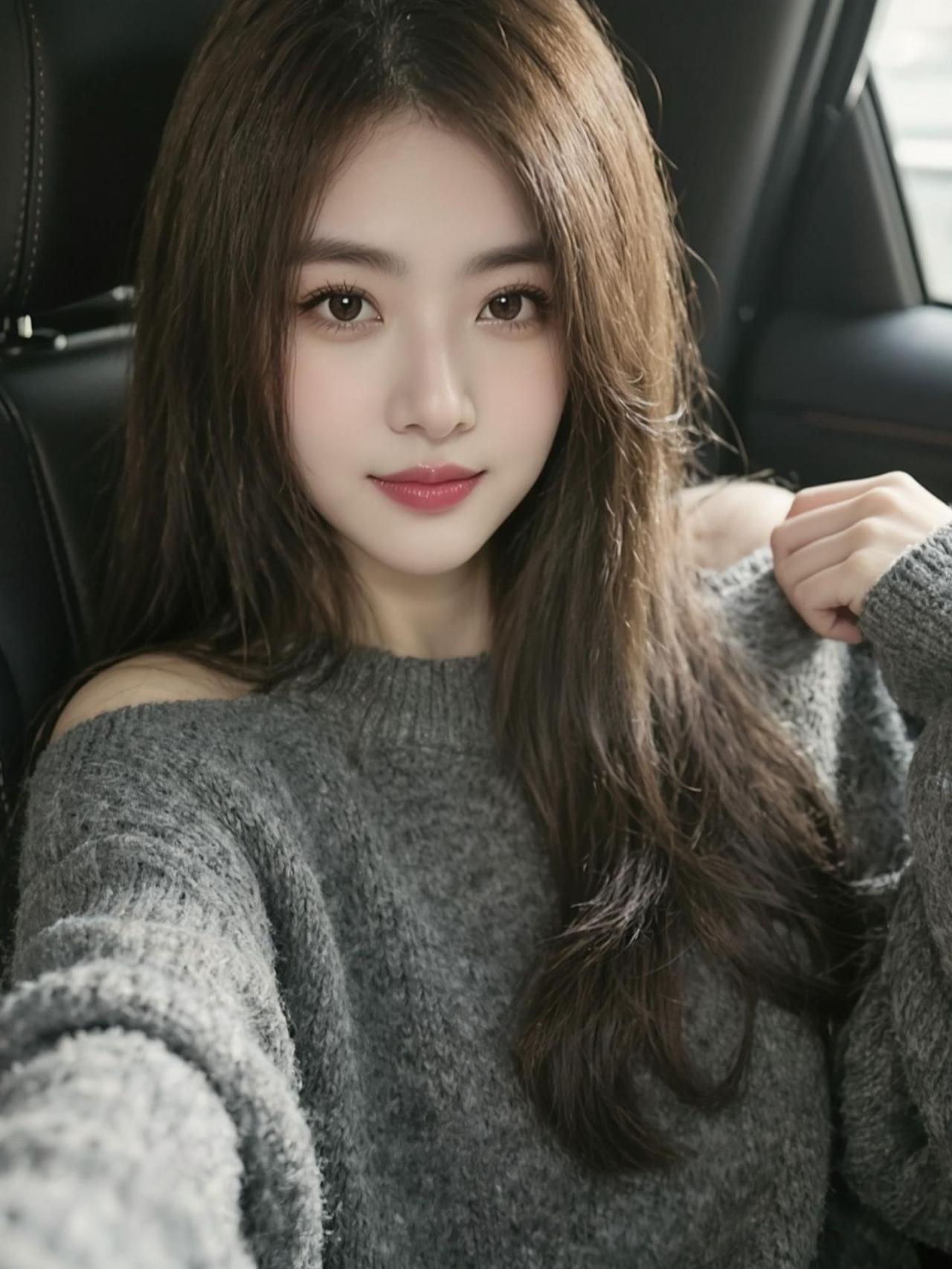 车后座上的温柔女神,静谧时光里的美丽瞬间。