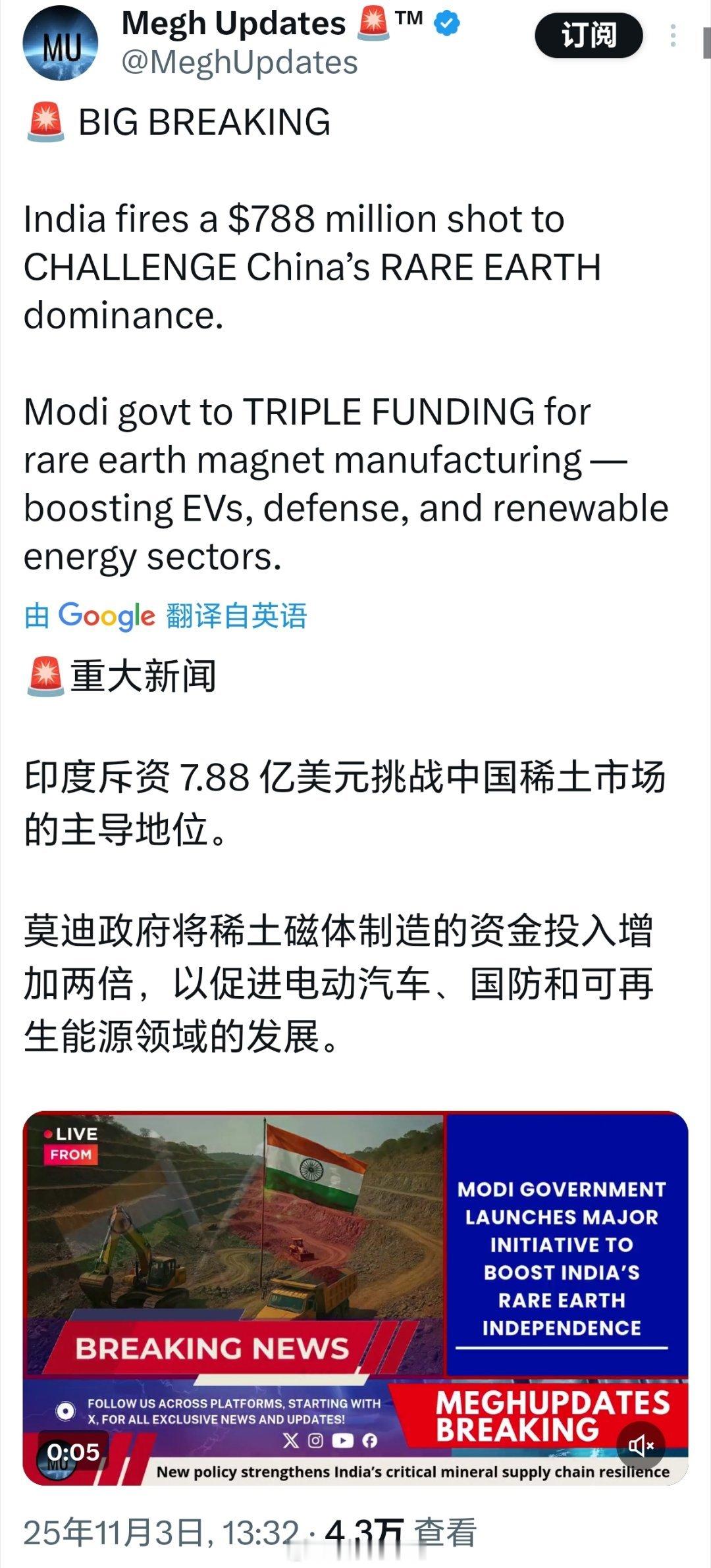 搞笑幽默印度斥资7.88亿美元挑战中国在稀土领域的霸主地位。