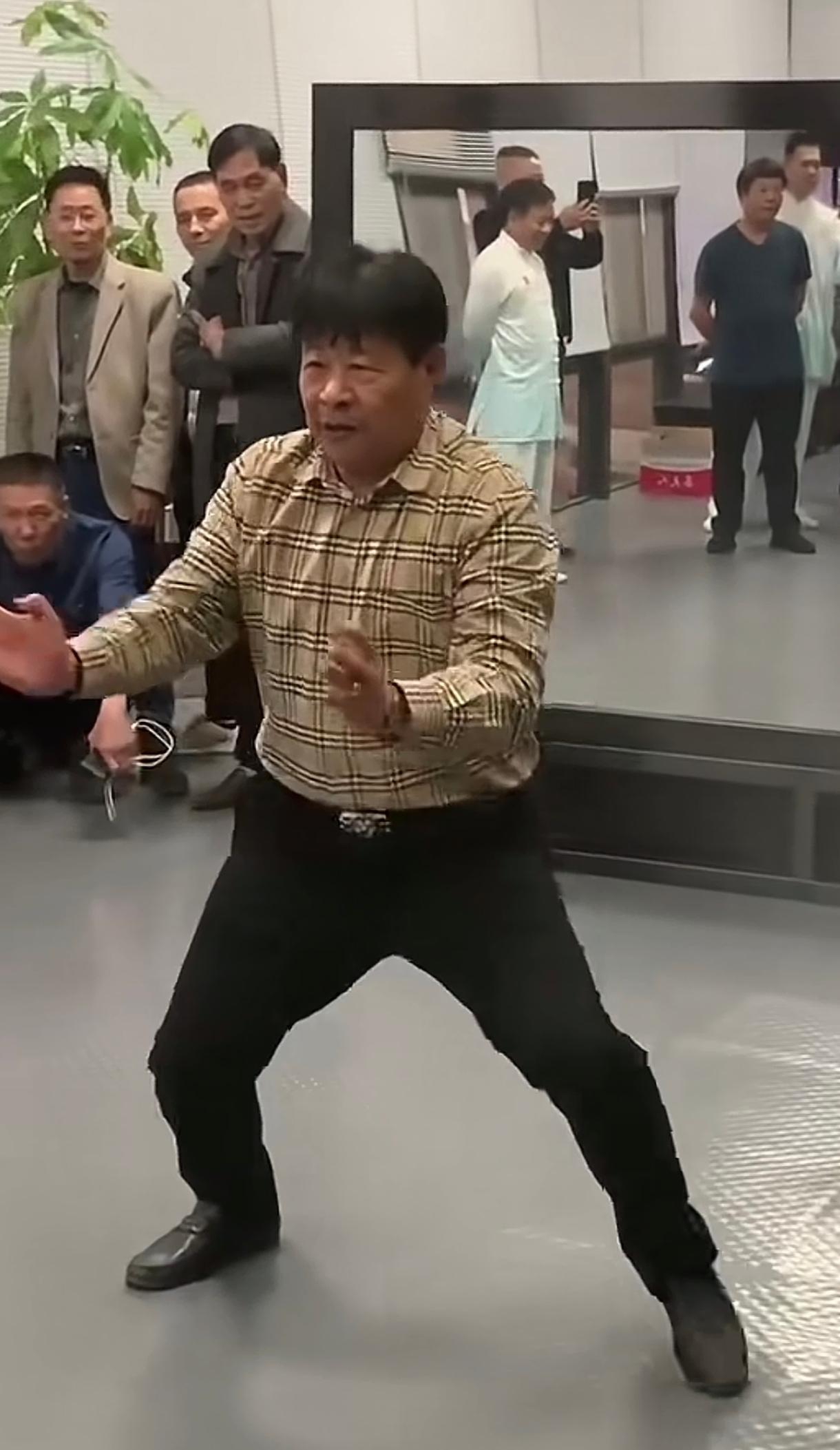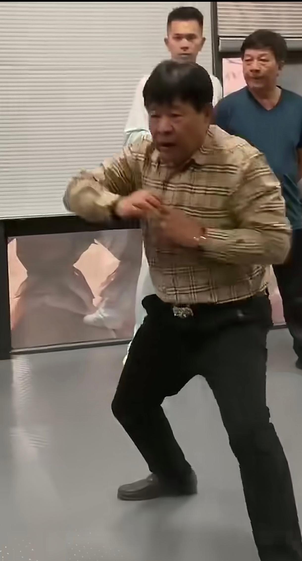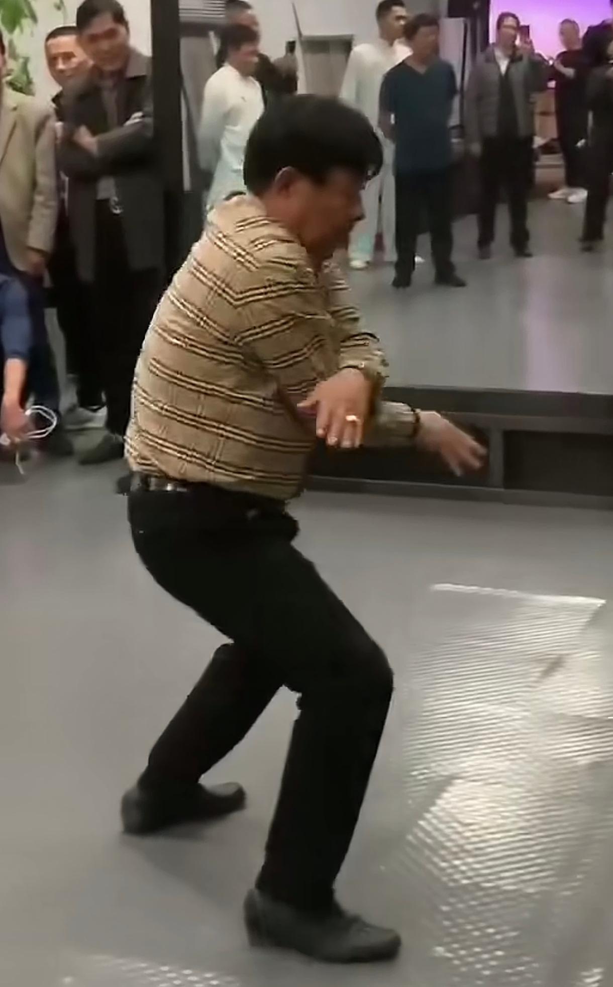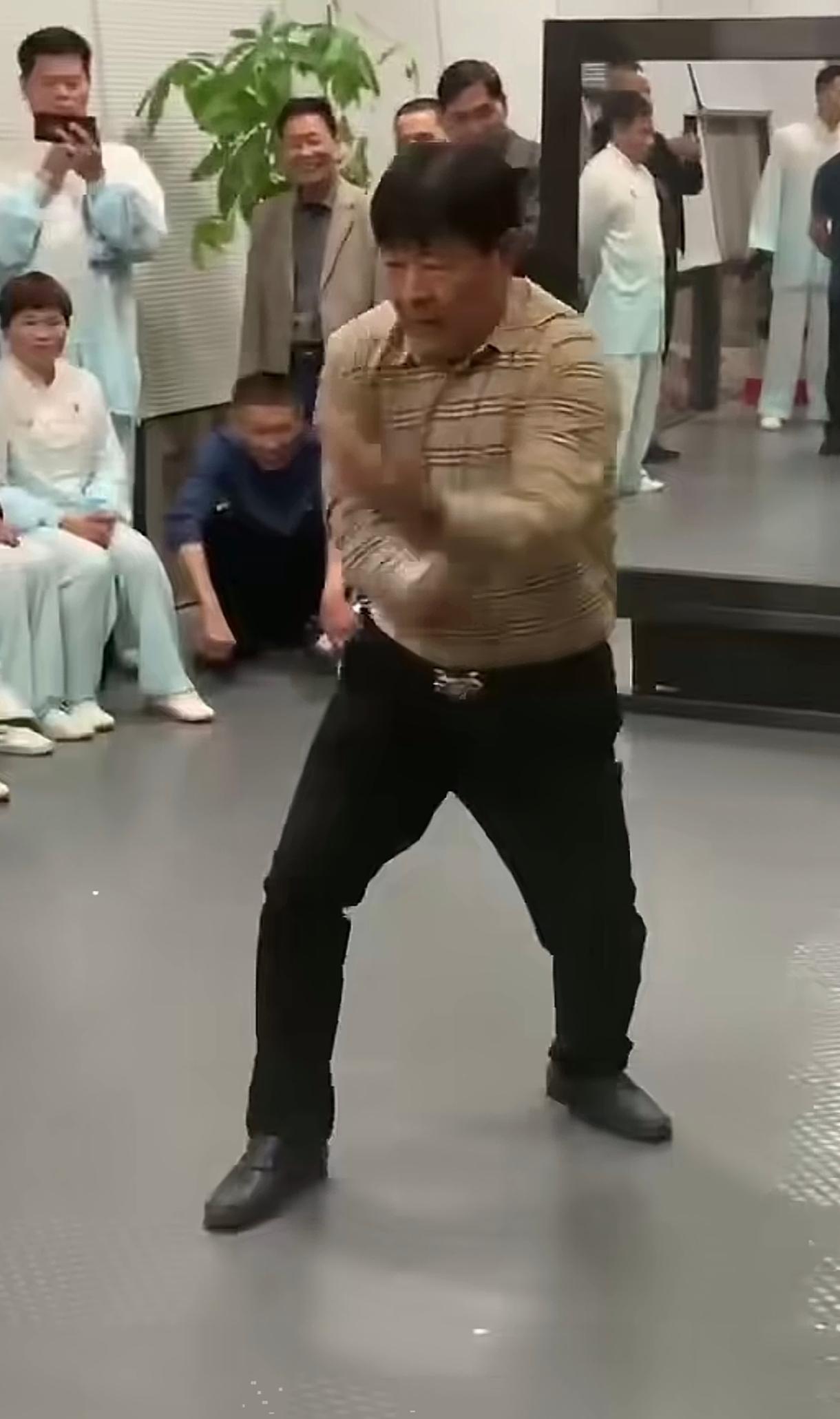 真没想到特步公司的老板竟然还是个练家子,现在虽然年纪大了,身材臃肿,但一套泉州南拳(又名五祖拳)仍旧打得虎虎生风。不要看他年纪大了后出拳的力量和运气减退了,但架子和气势都在。特步老板的功夫还真是专业的,不管是发力点,步伐,协调性,都不错,确实刚劲有力,稳中带强。整套拳打下来给我的感觉是南拳这些套路还是比较适合日常当健身操训练的,因为没那么多跳跃动作。 唯一美中不足的是特步老板练功的时候没穿自家品牌的运动服和运动鞋,而是穿的皮鞋。不知道是对自家产品没有自信,还是怎么着。