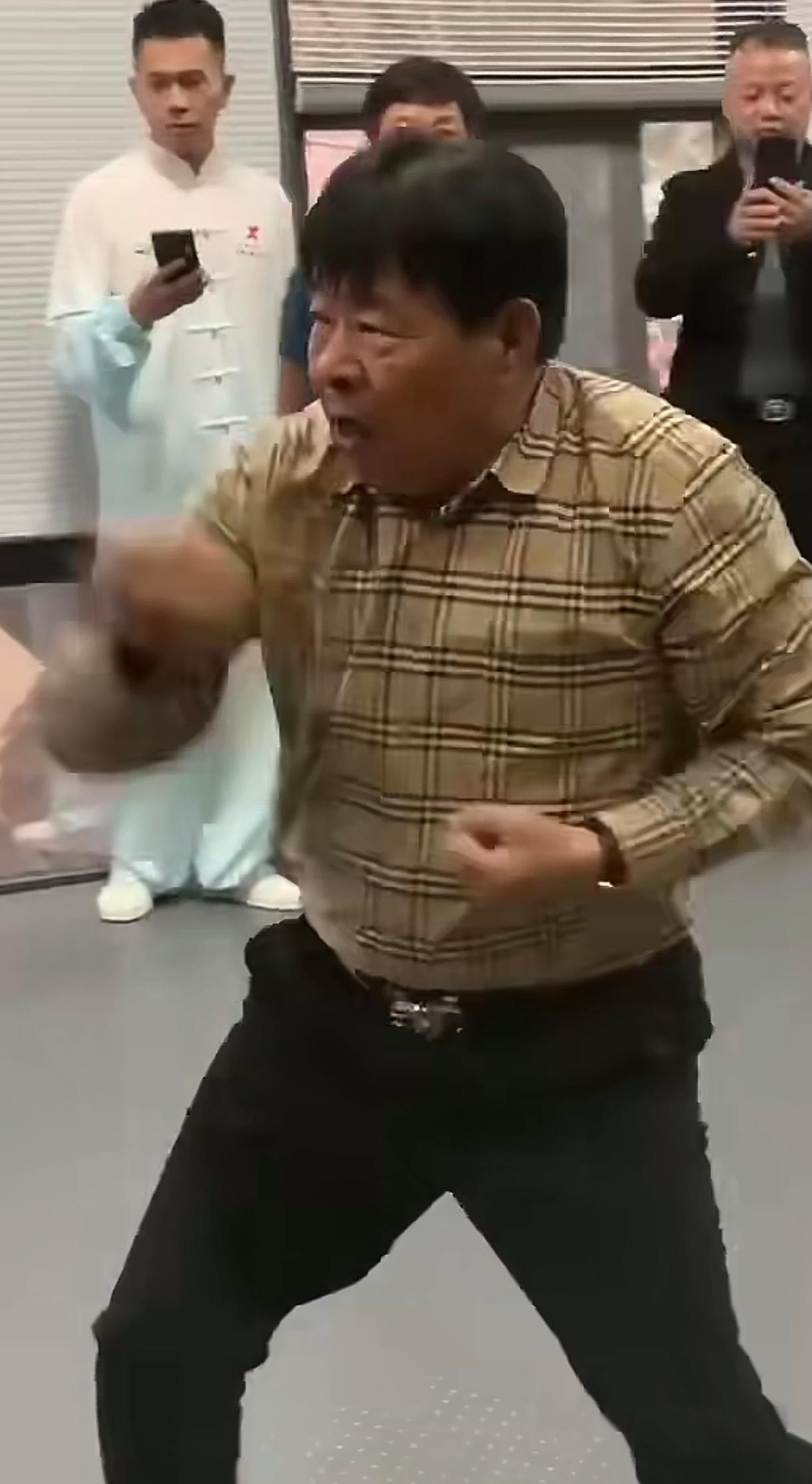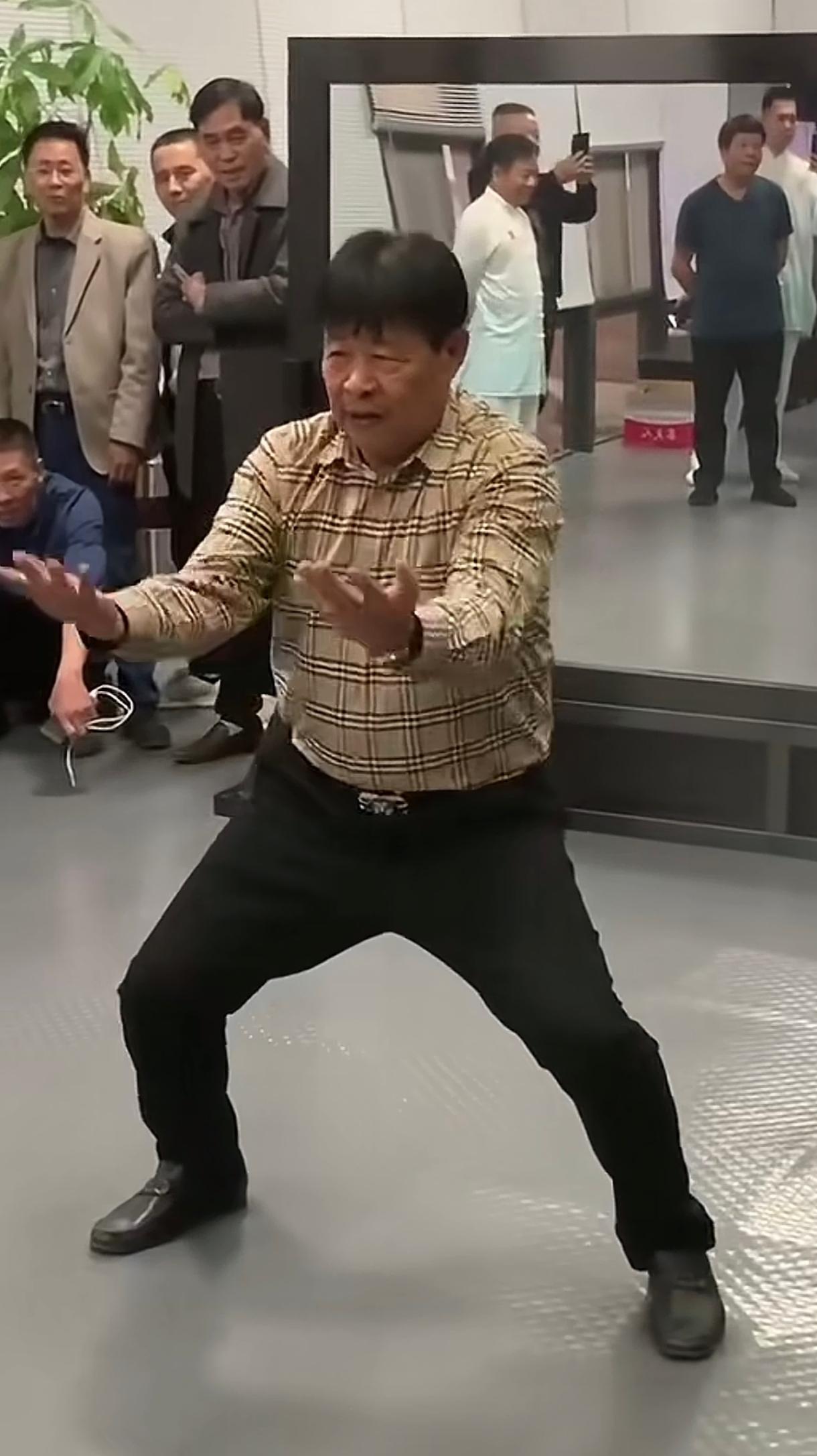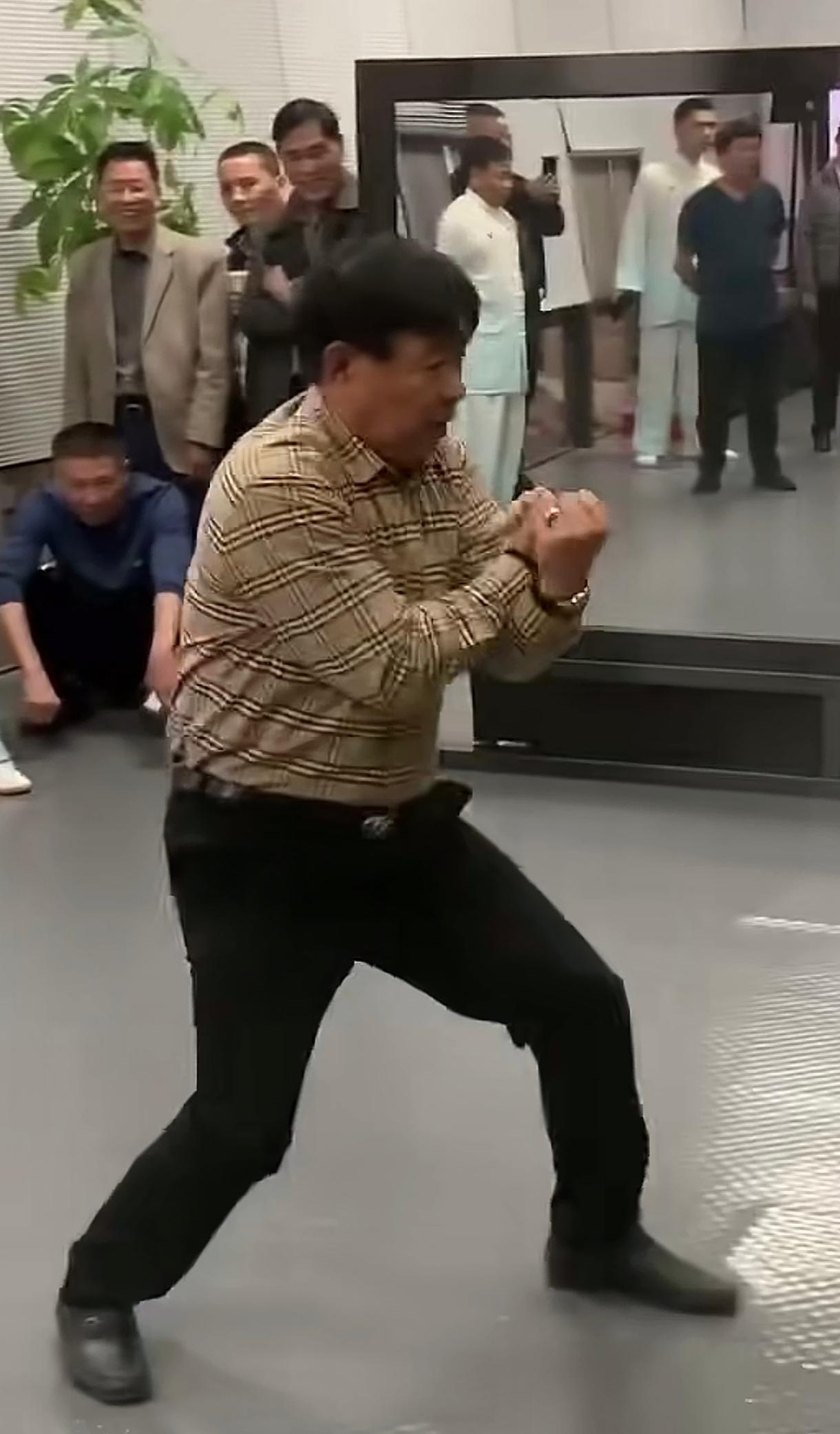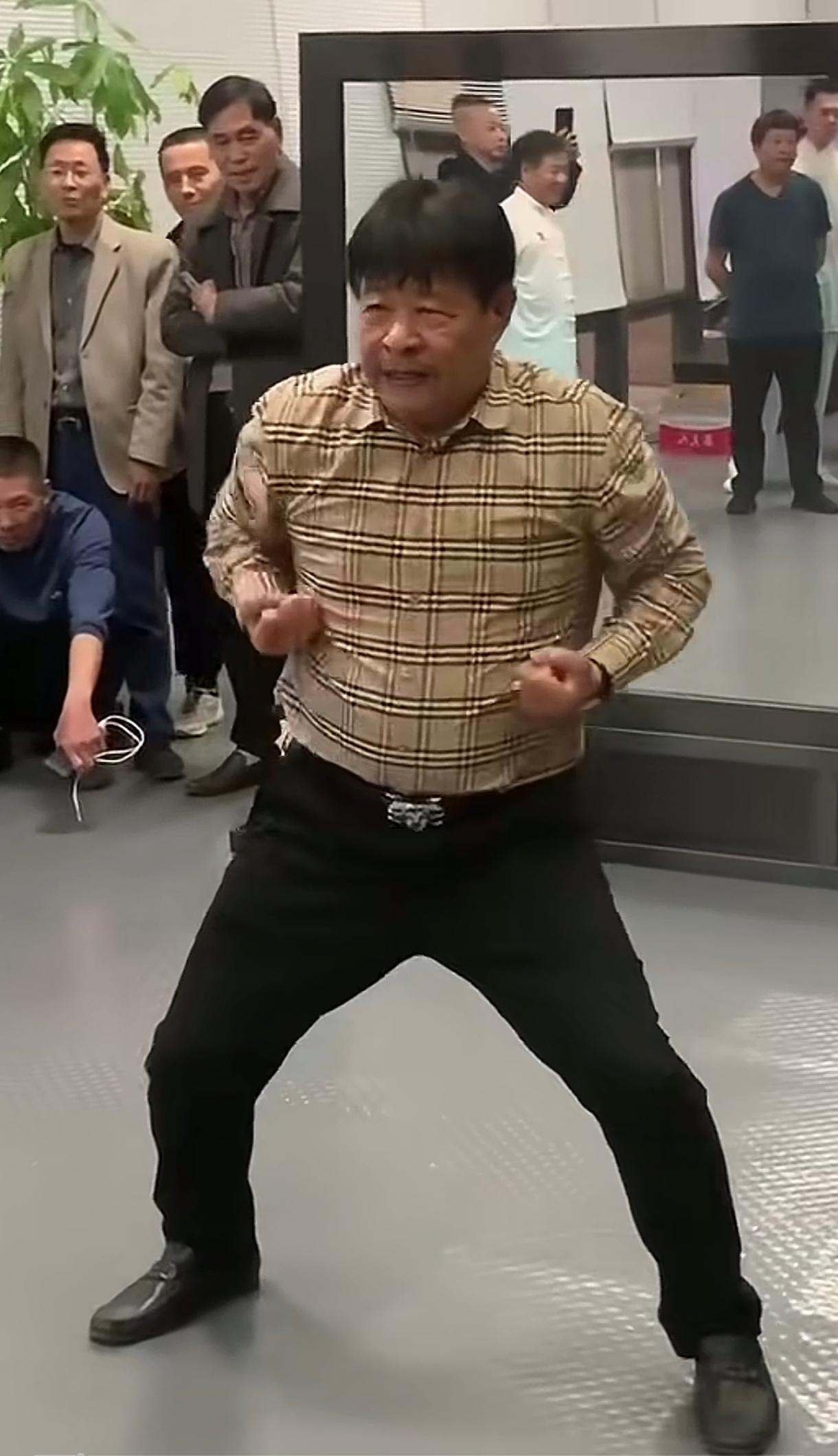 真没想到特步公司的老板竟然还是个练家子,现在虽然年纪大了,身材臃肿,但一套泉州南拳(又名五祖拳)仍旧打得虎虎生风。不要看他年纪大了后出拳的力量和运气减退了,但架子和气势都在。特步老板的功夫还真是专业的,不管是发力点,步伐,协调性,都不错,确实刚劲有力,稳中带强。整套拳打下来给我的感觉是南拳这些套路还是比较适合日常当健身操训练的,因为没那么多跳跃动作。 唯一美中不足的是特步老板练功的时候没穿自家品牌的运动服和运动鞋,而是穿的皮鞋。不知道是对自家产品没有自信,还是怎么着。