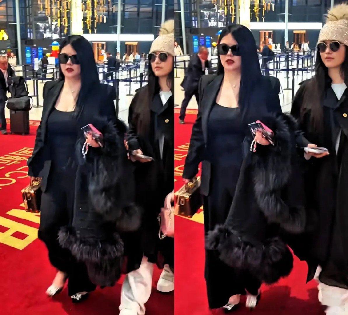 李湘陪王诗龄回家,李湘真是太自信了,天气那么冷,居然穿低领的衣服,脖子里面的皱纹一层又一层,但她走路却很霸气,像女老板似的。