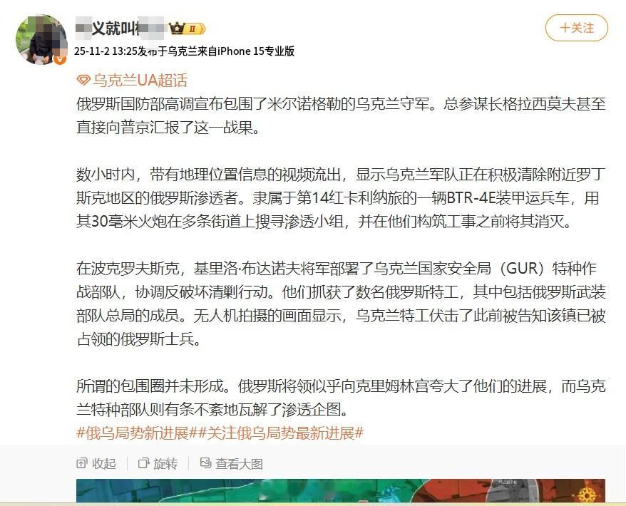 【#俄乌在红军城展开激战#】据塔斯社11月3日报道,乌克兰国防部前副部长维塔利·