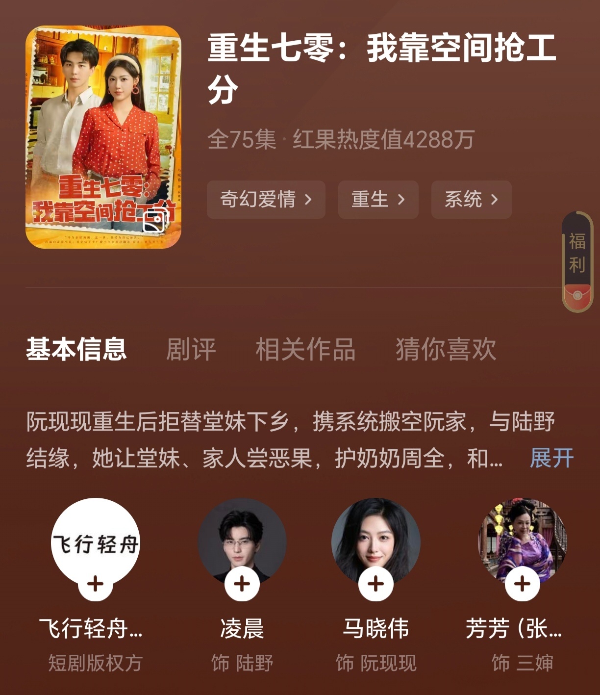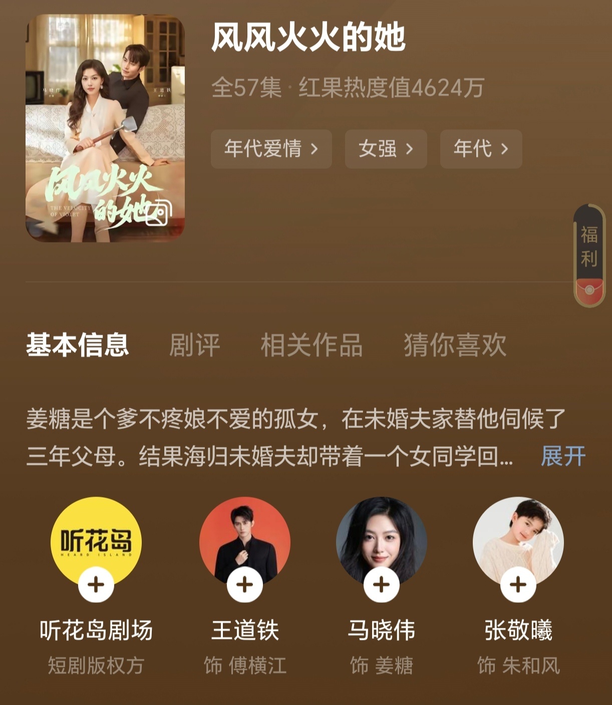 马晓伟的剧目70年代占了一半,人设性格也都差不多