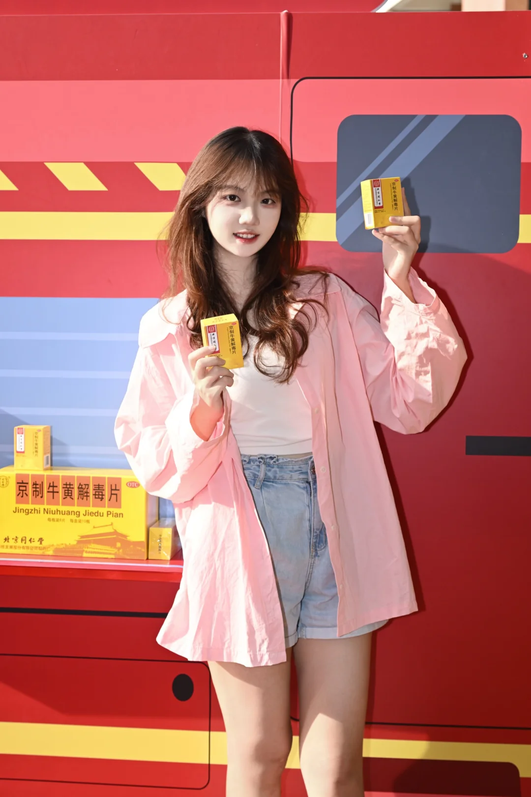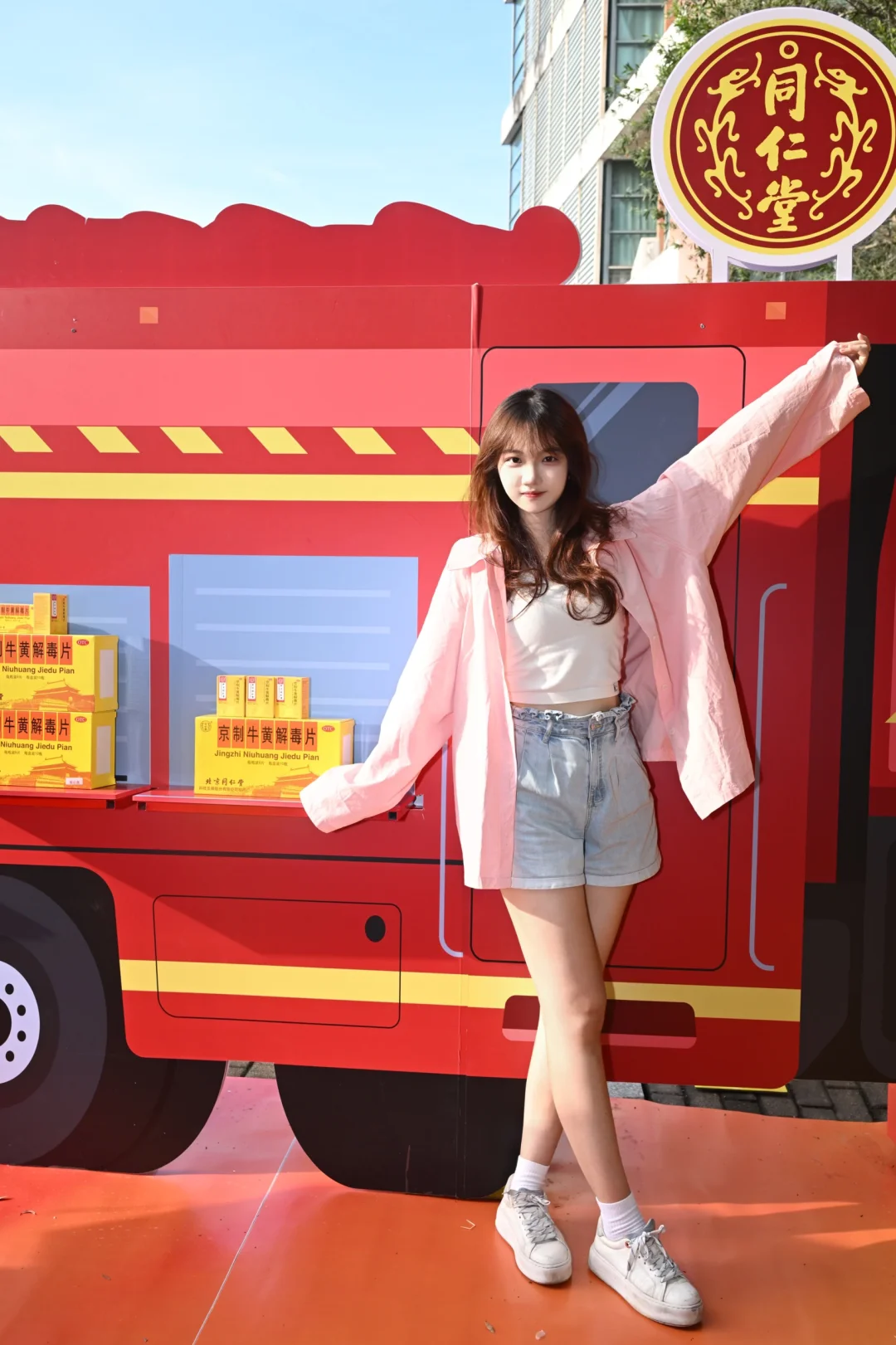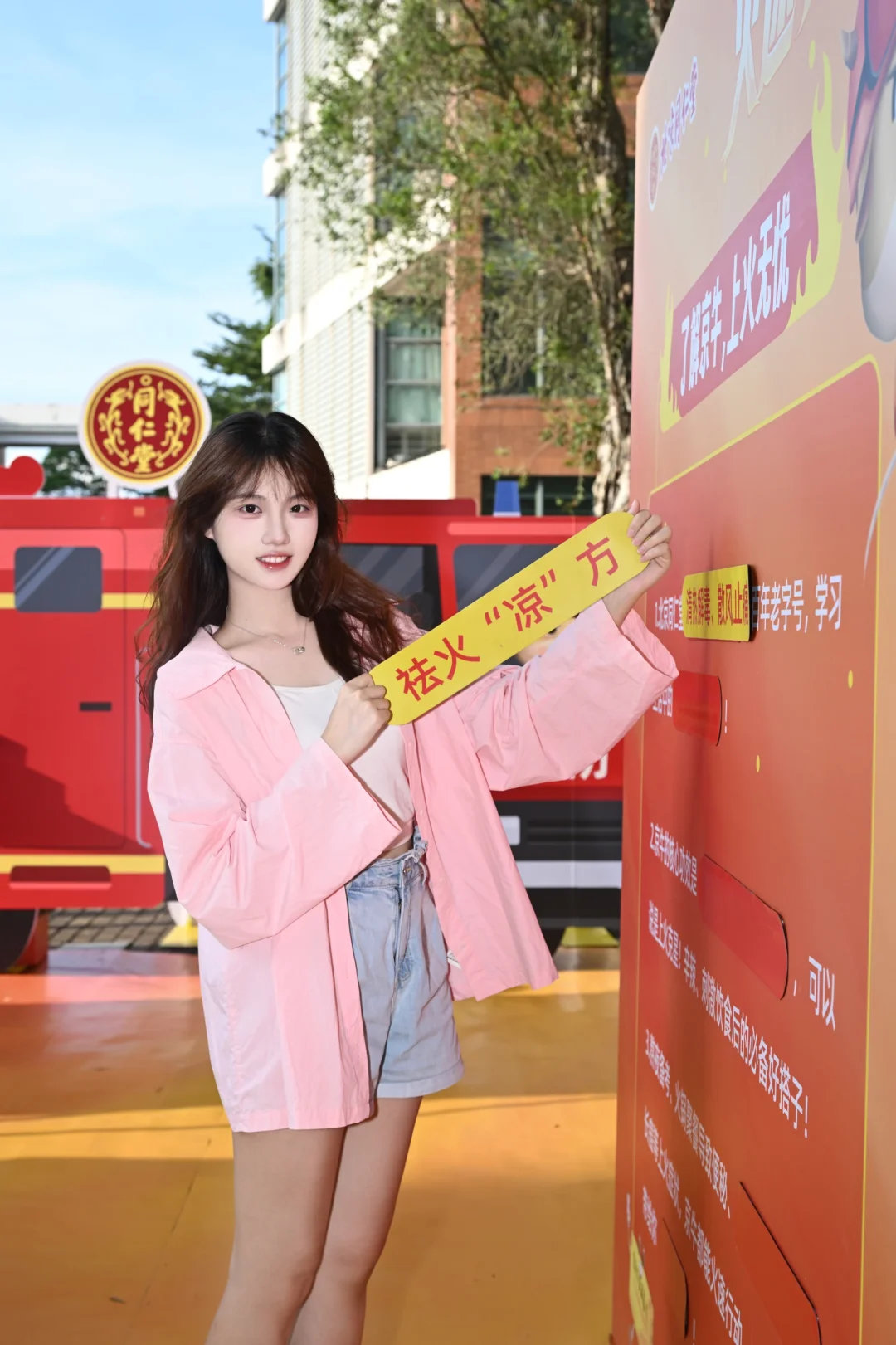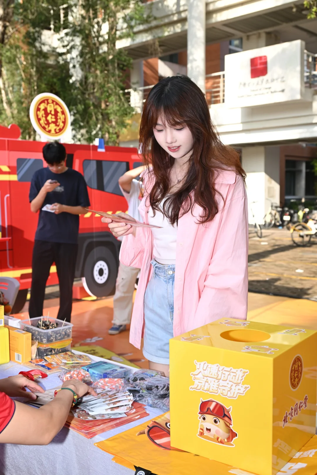 和朋友在校园里散步时竟然看到了消防车!原来是北京同仁堂京制牛黄解毒片的快闪活动!