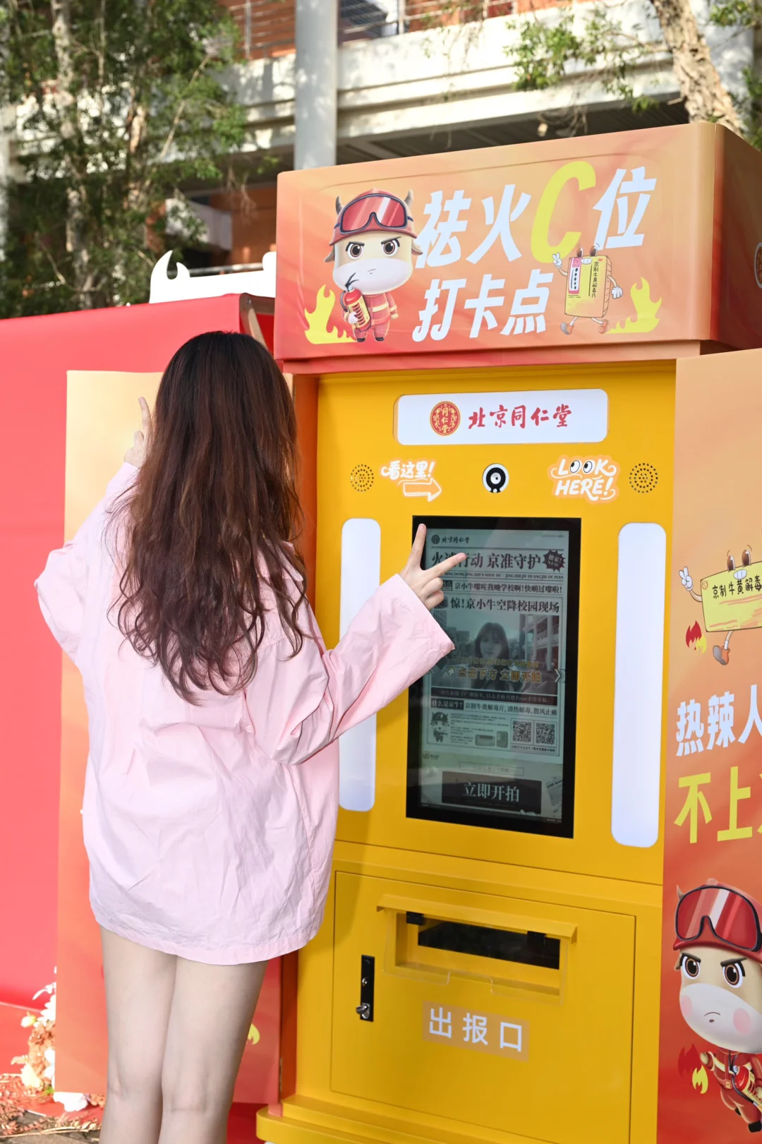 体验互动区的【京准出击】还能再盖一个哦,需要精准用水枪击中“”病症牌”,翻转为”京牛牌”,就可以啦!精准打击的不止是水枪还有京牛的祛火功能啊!京制牛黄解毒片能缓解上火引起的咽喉肿痛,每次辣的吃多了上火就靠它!