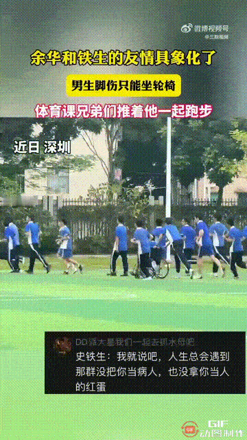 广东深圳一所校园内,一群同学正在跑步,但有趣的是,其中有一个男孩的脚不慎受伤了,因此只能坐着轮椅,但他的同学都没有对他另眼相待,而是推着他一起跑步,画面看起来非常欢乐,也让人感到温馨。 网友看完这一幕,都觉得这群同学的友谊让人非常感动,虽然这个男孩的脚受伤了,只能依靠轮椅行走,但这群同学并没有抛下他,而是以另一种方式陪着他一起,这种场景让人想起史铁生那句“他们没有把我当残疾人”,可见青春时期的友情,确实很让人动容,因为那是单纯的美好。大家怎么看呢?